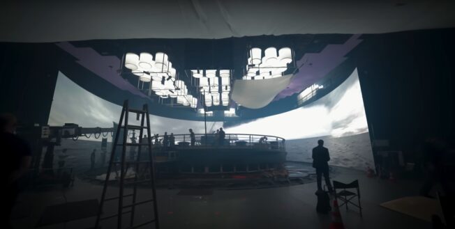 Im Behind-the-Scenes-Video werden die riesigen Bildschirme in einem noch viel größeren Studio gezeigt, welche als Hintergrund fungieren. Diese machen es dem Team um ein vielfaches einfacher den Drehort zu wechseln ohne tatsächlich dafür eine Reise antreten zu müssen.