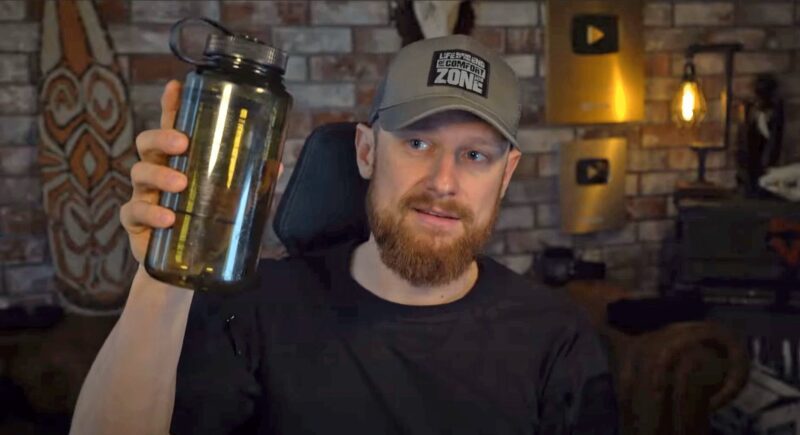 „Du kannst da Essen reinpacken […] oder du entscheidest dich für sinnvolle Tools. Ein Feuerstahl, Pfeilspitzen, Angelhaken, Sehne, Schnur. […] Der Kreativität sind quasi keine Grenzen gesetzt. Wichtig ist, die Flasche darf nicht verformt werden und der Deckel muss natürlich komplett geschlossen sein.“