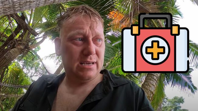 Von Palmen könnten Kokosnüsse herunterfallen und auf einem offeneren Platz steht der sogenannte Todesapfelbaum, vor dessen Gift beim Briefing eindringlich gewarnt wurde. Er entscheidet sich schlussendlich für einen Platz zwischen Palmen und verletzt sich beim Aufbauen prompt.