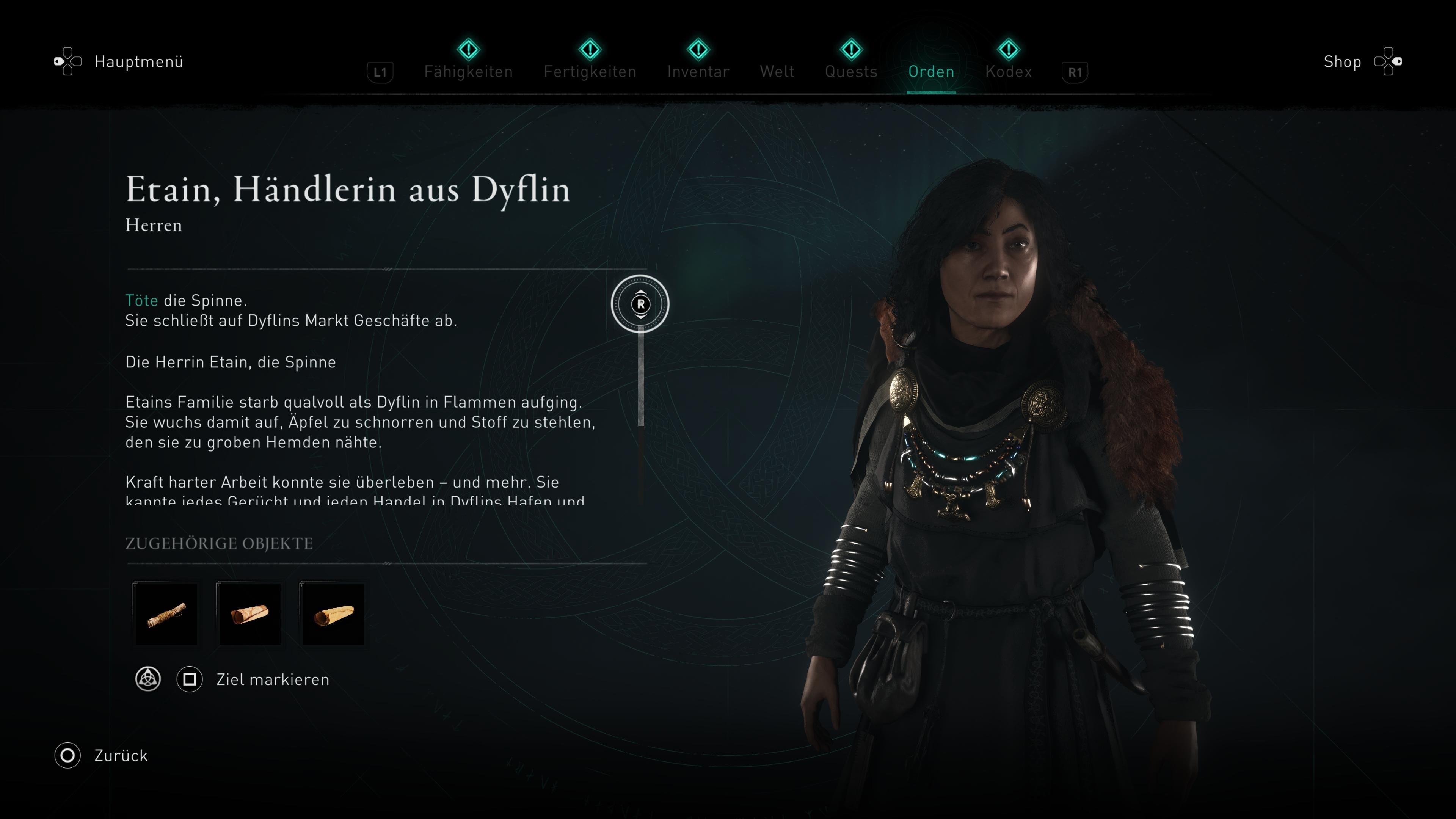- Aufenthaltsort: Die Spinne befindet sich auf dem Markt in Dyflin, im Westen der Stadt.