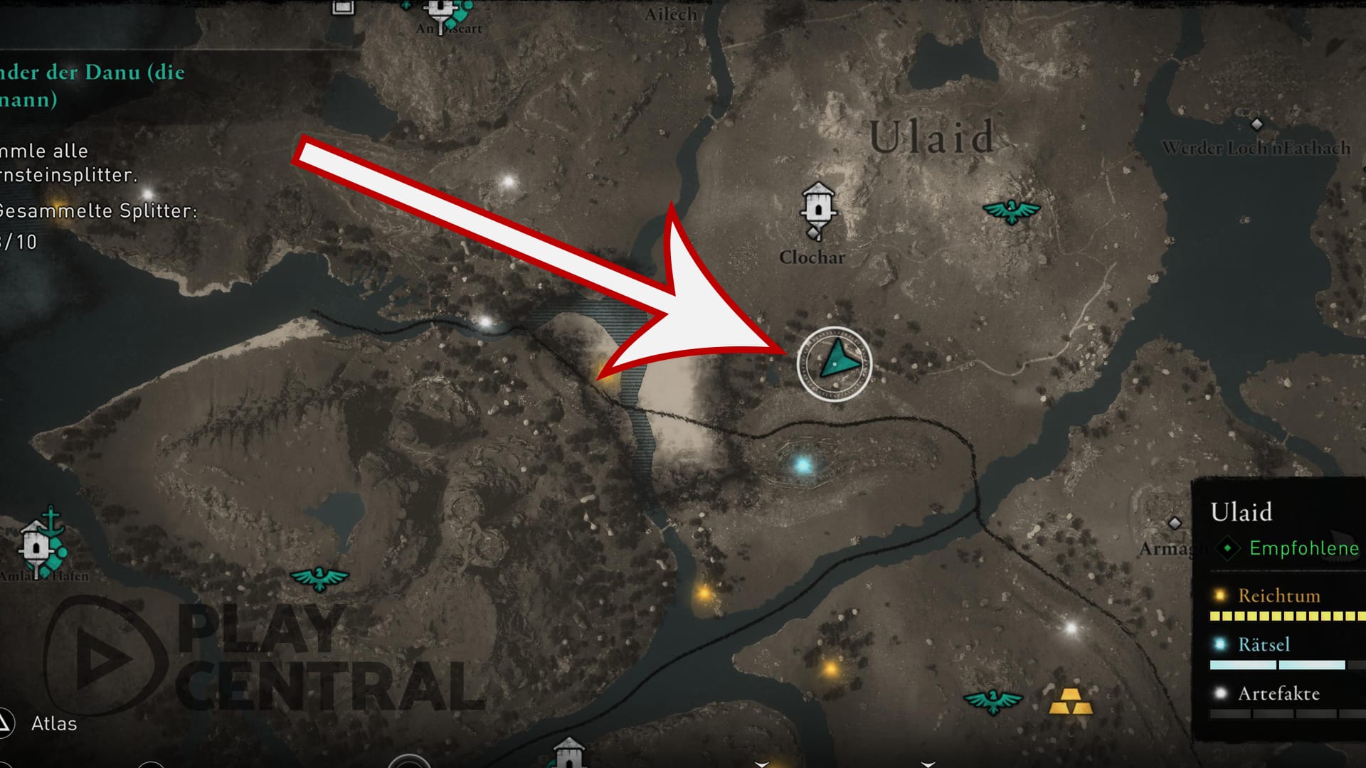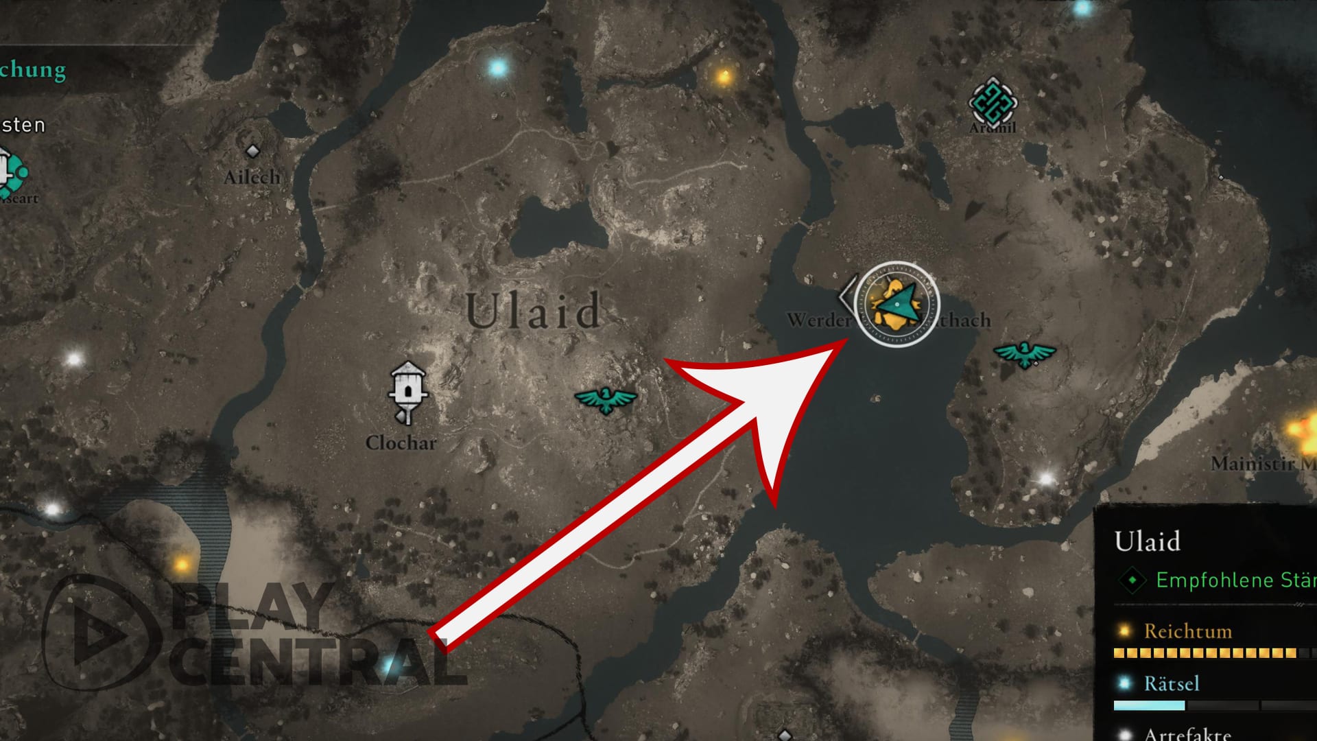 - Hinweis 2 erhaltet ihr an der Ostküste von Ulaid im Raubzug-Kloster Mainistir Mhaigh Bhile. Das Schriftstück liegt dort auf einer Bank in der großen Kirche.
