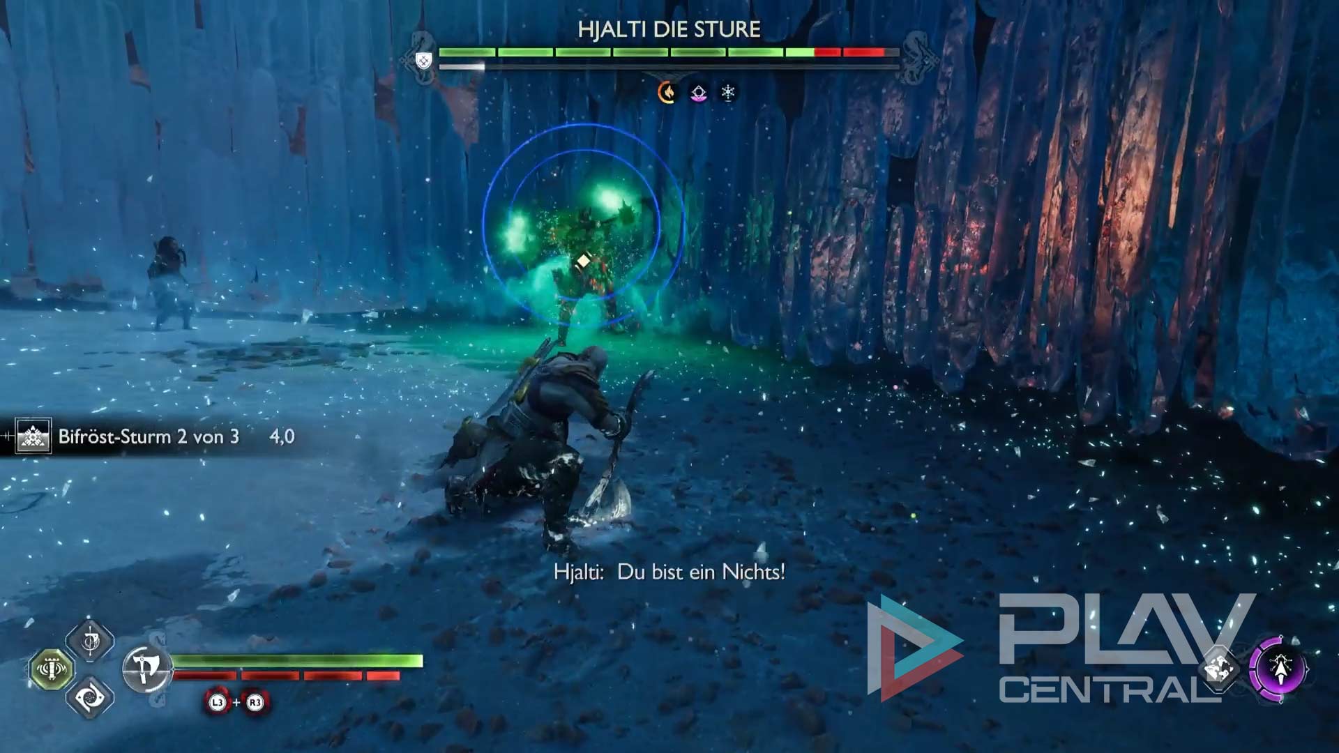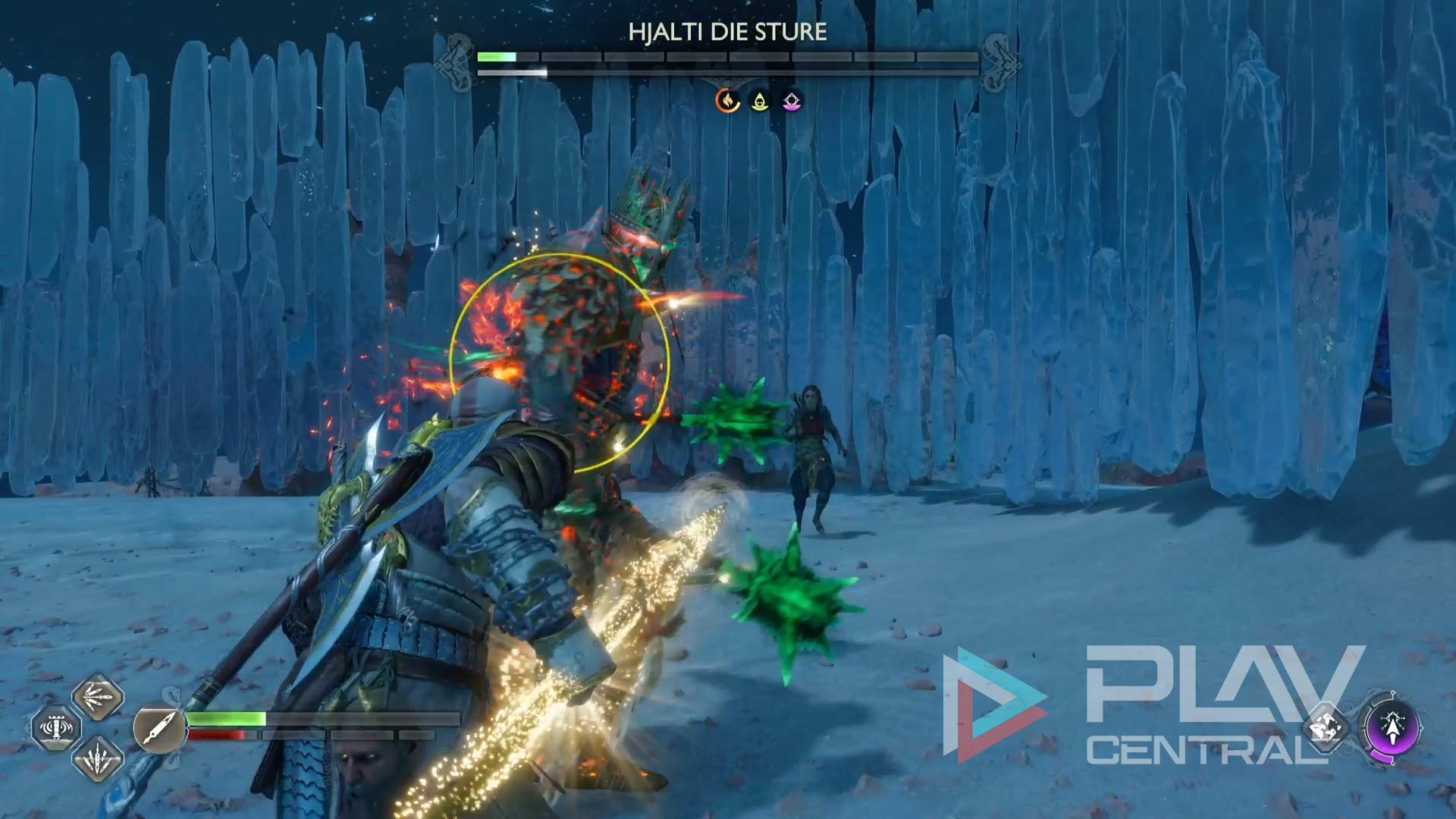 In der Wüste von Alfheim trefft ihr auf die Berserkerseele Hjalti die Sture. Dieser Kampf ist alles andere als ein Zuckerschlecken, da dieser Gegner mit zwei großen Keulen ausgerüstet ist und damit lange, gefährliche Kombo-Angriffe ausführt.