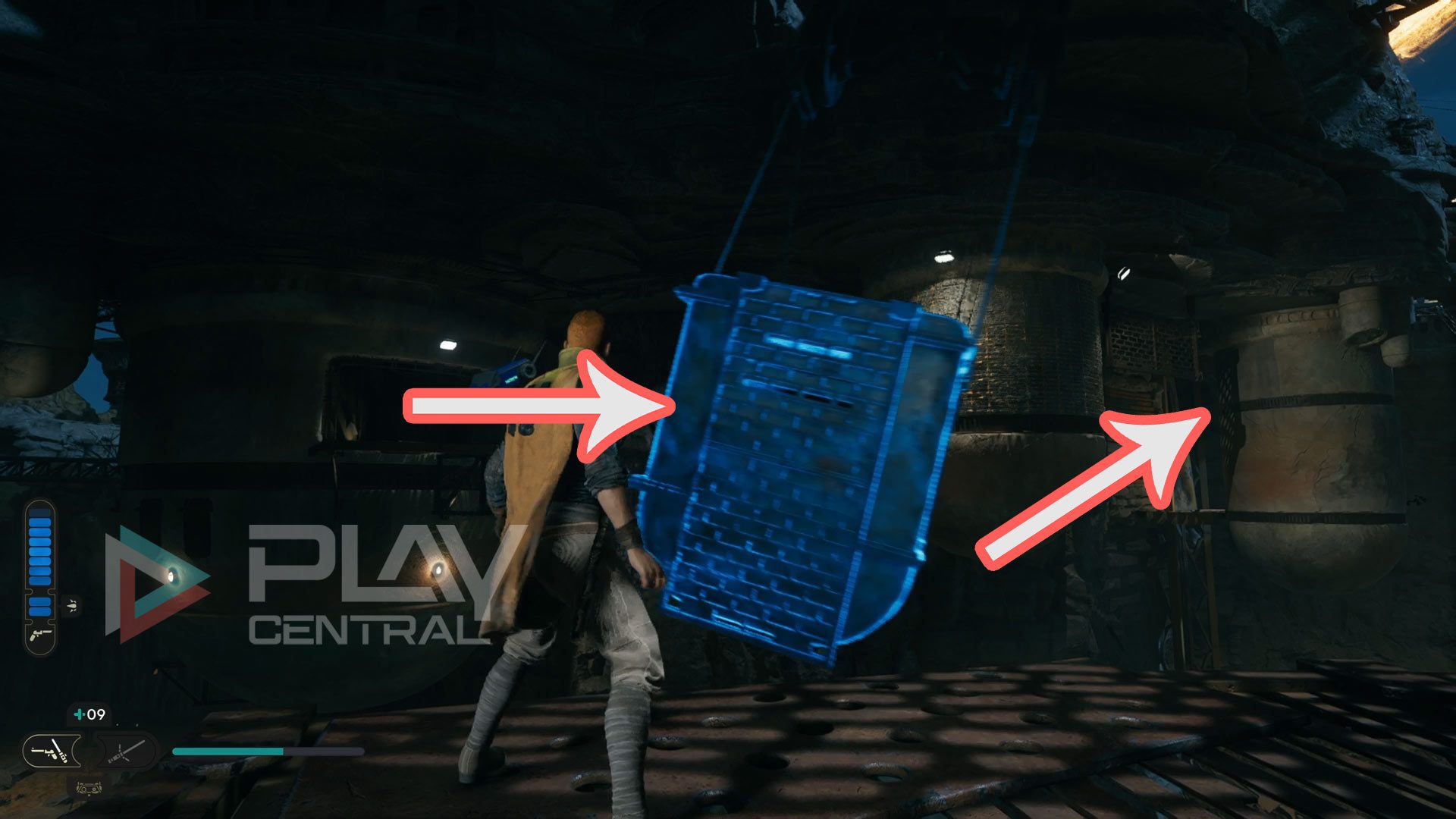 Zwar lässt sich diese Aufgabe innerhalb weniger Minuten lösen, allerdings benötigt ihr dafür unbedingt die Macht-Fähigkeit Heben und Schmettern, die ihr erst später im Verlauft der Handlung automatisch erlernt.