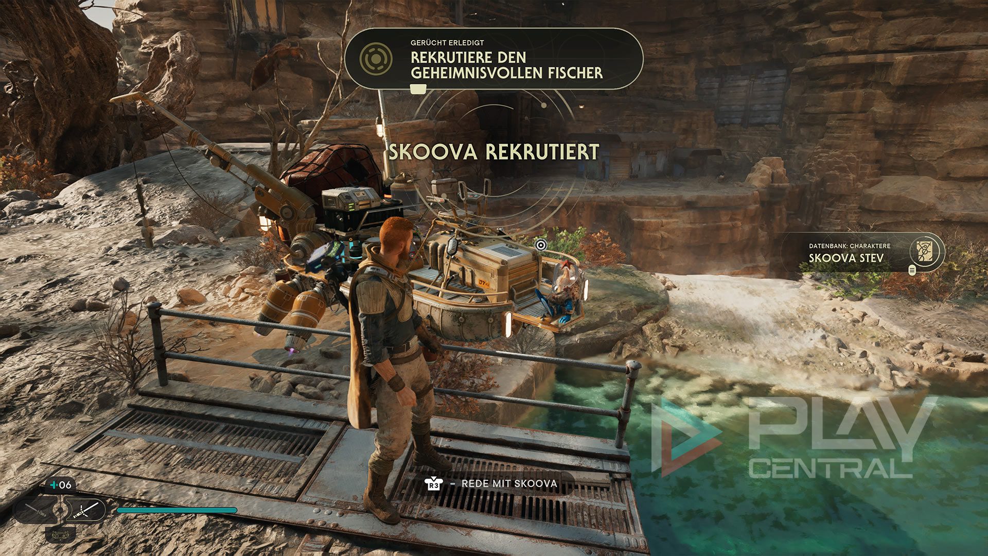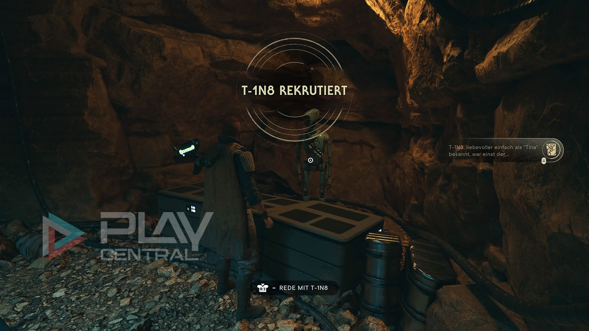 Folgt dem Weg nach unten, aktiviert die Abkürzung dort und schaltet dann eine Ebene weiter unten sämtliche Gegner aus. Habt ihr dies erfolgreich erledigt, könnt ihr mit dem Jawa auf der anderen Seite reden, wodurch er von Cal rekrutiert wird und fortan im Saloon aufzufinden ist.