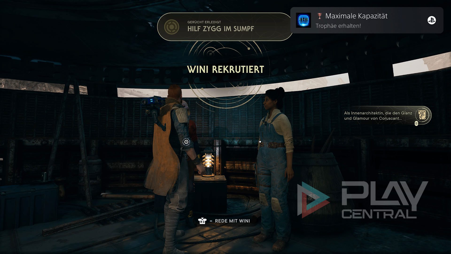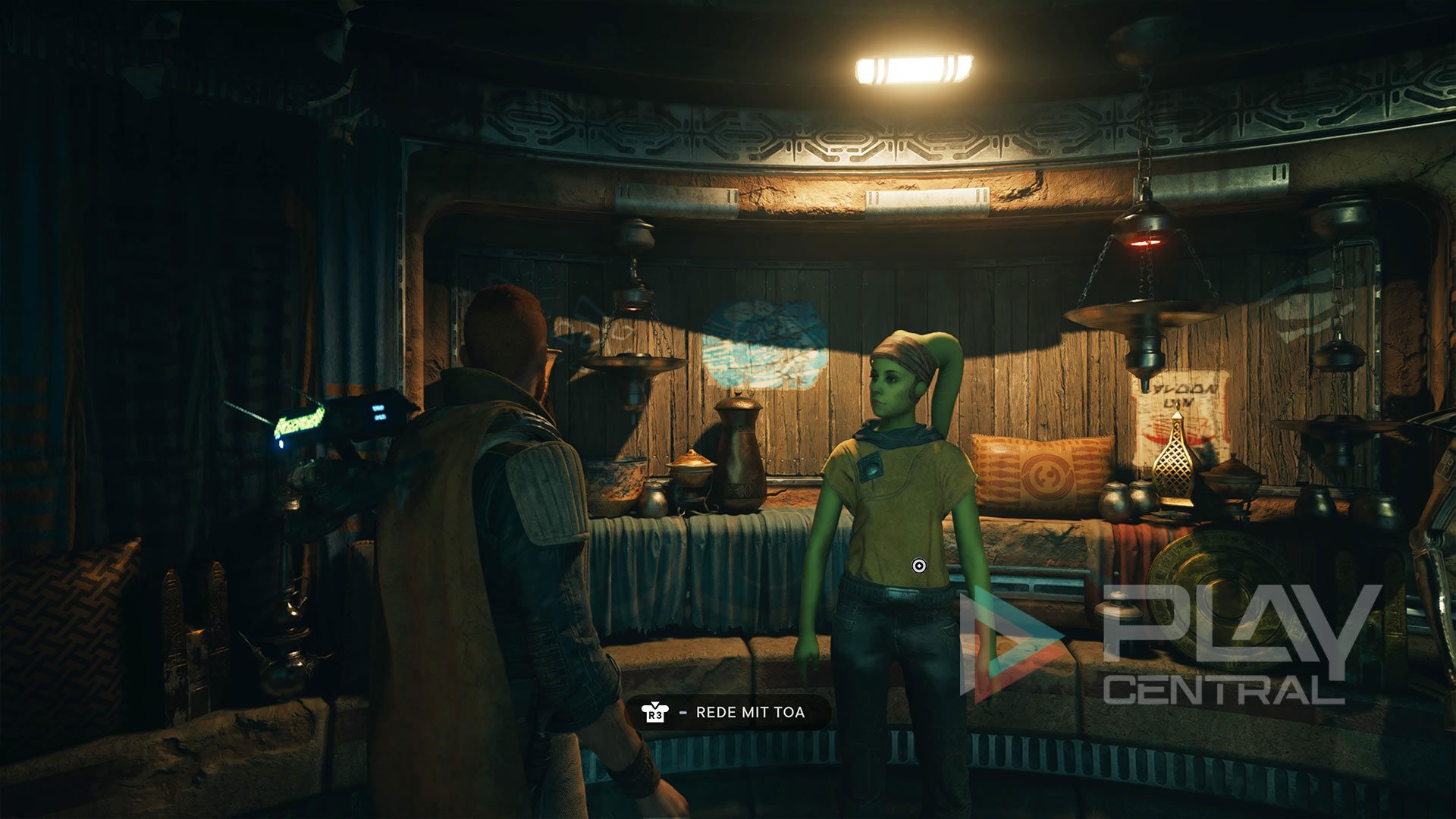Hier angekommen, könnt ihr das Datapad von Zygg in Empfang nehmen, das allerdings nicht mehr funktioniert. Bringt es nun der Auftraggeberin zurück, um sie und Wini gleichzeitigt für den Saloon zu rekrutieren.