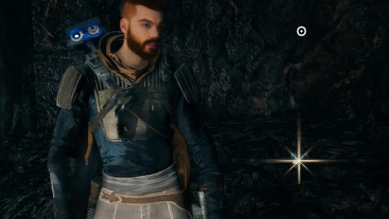 - Unten bei dem Gallenschlund lauft ihr an der Bergseite bis ganz hinten in dem Bereich durch. Bei der Höhle und kurz vor der Schlucht solltet ihr auf einen roten Droiden treffen. Erledigt ihn mit dem Lichtschwert, um wieder einen Schatz ins Inventar packen zu können.