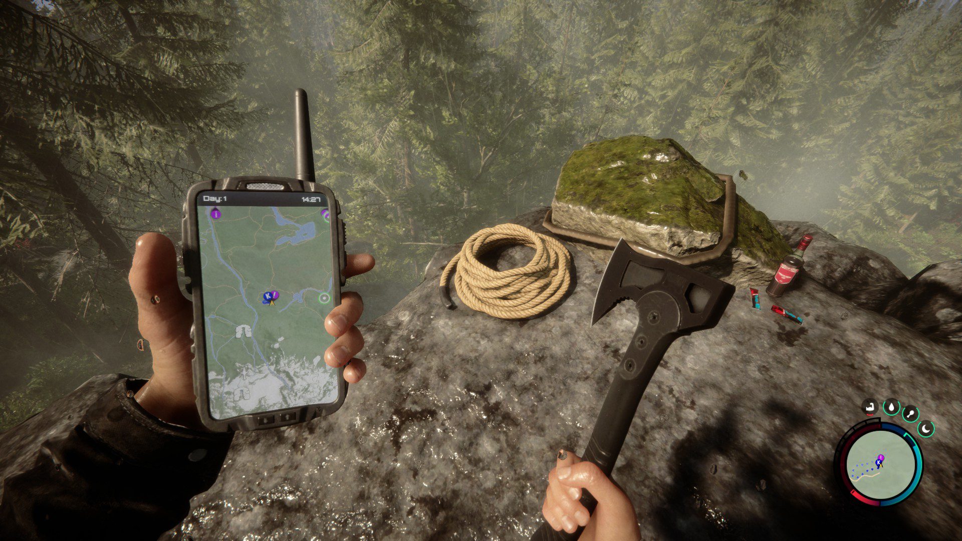 In „Sons of the Forest“ übernimmt ihr die Rolle einer Figur, die in einem Wald nach einem Hubschrauberabsturz ums Überleben kämpft. Um gegen Hunger, Durst, Kälte und das Wetter anzukämpfen, muss er Essen, sauberes Wasser und Kleidung finden.