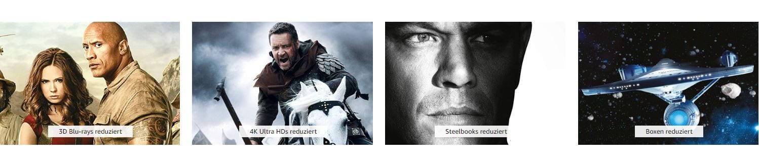 Derzeit könnt ihr bei Amazon beim Kauf von Sonderformaten sparen und eure Sammlungen mit 3D Blu-rays, 4K Ultra HDs, Steelbooks und Boxen ausweiten und vervollständigen. Wählen könnt ihr aus 435 Ergebnissen zu beliebten Filmen und Serien für alle Altersklassen.