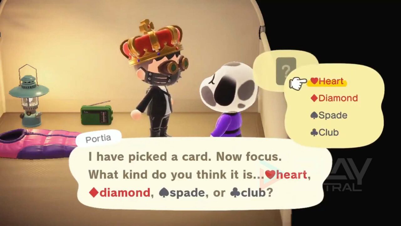 Camper bieten gelegentlich Minispiele an, z.B. ein Kartenspiel, bei dem du die richtige Farbe oder das richtige Symbol erraten musst.