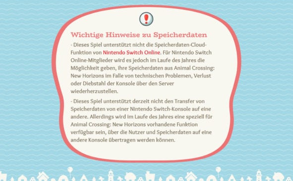 So bleibt es erstmal dabei, dass sich Speicherdaten nicht ohne Weiteres auf eine andere Nintendo Switch übertragen lassen. Nintendo plant dahingehend aber etwas „für die Zukunft“, dass speziell für „Animal Crossing: New Horizons“ zur Verfügung stehen soll.