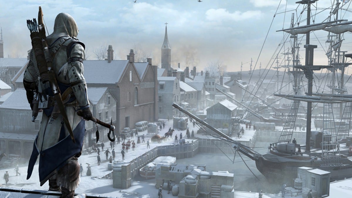 Die große und offene Welt von AC3 ist erstaunlich lebendig und liebevoll gestaltet und toppt im aktuellen Ableger die Vorgänger locker. Die Fülle der Menschen auf der Straße, die jeweils ihren Aktivitäten nachgehen, wie zum Beispiel die Arbeiter eine Schiffswerft im Hafen. Die glaubenswürdige Architektur , die Animationen und die Optik. Es läuft alles rund zu einem guten Komplettbild zusammen. Hier gibt es wirklich reichlich wenig zu meckern. Allerdings zahlt man für diese schöne Optik auch einen Preis – die von uns angespielte PS3-Version litt unter regelmäßigen Framerate-Einbrüchen wenn die Action auf dem Bildschirm mal zu schnell oder wild wurde. Zudem blieben uns gelegentliche Clipping-Fehler und der freie Fall in unendliche Levelböden nicht erspart. Doch das sind nur kleine Wehmutstropfen für eine ansonsten anstandsfreie Umsetzung. Eine allerdings wirklich schöne Verbesserung ist, dass wir nun beim klettern nur noch einen Schulterbutton gedrückt halten müssen und nicht wie zuvor den rechten Daumen auf einem Knopf parken müssen. Dadurch lässt sich die Kamera nun auch bei schnellen Klettereinlagen frei bewegen und Abstürze in tiefe Häuserschluchten werden minimiert. Dennoch wurden wir das Gefühl nicht los, dass die ganze Kletterei im Zweifelsfall immer noch nicht so akkurat möglich ist wie wir uns das wünschen würden.