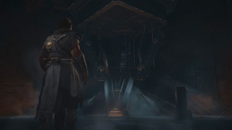 Nach einem steinigen und blutigen Weg erreicht unser Hauptcharakter ein geheimnisvolles Tor unterhalb der Burg und Nihal zeigt Basim, wie er es öffnen kann. Anhand der Architektur ist klar, dass dieser Ort von den Isu erbaut wurde. Kurz darauf erreicht Basim einen Sarkophag, in dem sich Nehal befindet!