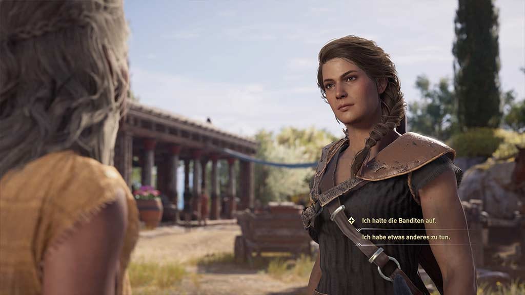 Darüber hinaus wurden wir Zeugen von Kassandras Charme, der euch so manche Beziehung ermöglichen könnte. Denn das ist in „Assassin’s Creed Odyssey“ nun möglich und eine bisher nie dagewesene Spieloption. Dabei solltet ihr vor allem Durchhaltevermögen zeigen und beim wahlweise männlichen oder auch weiblichen Geschlecht nicht mit Freundlichkeiten, Anspielungen oder Komplimenten sparen. Hierbei muss es nämlich nicht nur bei einer Freundschaft bleiben, sondern kann durchaus in einem erotischen Abenteuer gipfeln. Hierbei sind Zuschauer jedoch leider unerwüscht. So folgt nach einigen heißen Küssen ein Szenenschnitt und Kassandra verlässt in voller Kriegermontur, aber mit zufriedenem Gesichtsausdruck, den Ort des Geschehens.