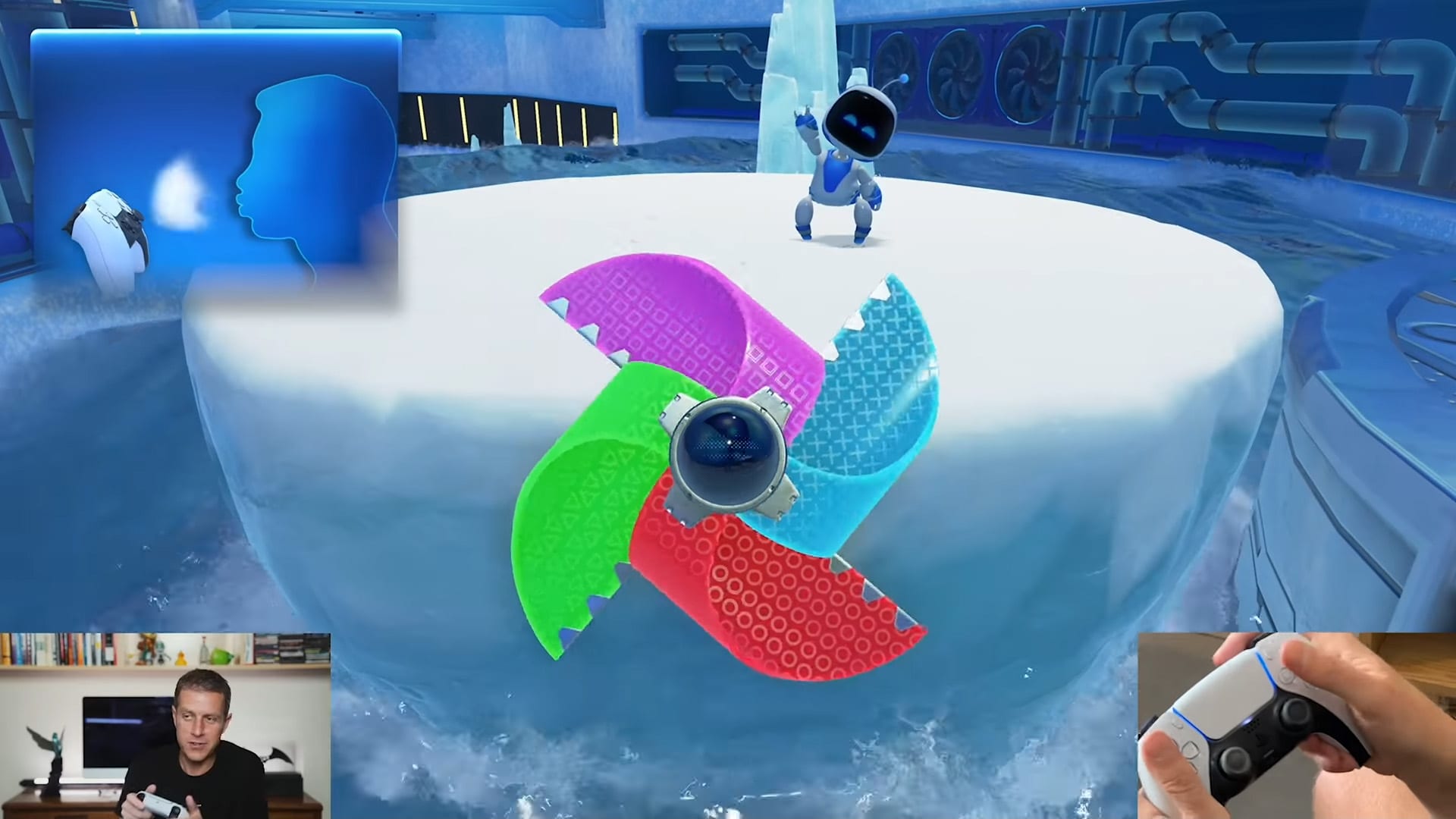 Ein Beispiel bezieht sich auf das haptische Feedback, das wir spüren sollen, wenn der kleine Astro auf normalem Untergrund läuft oder durch Sand und Eis schreitet. Solche Gegebenheiten soll der Spieler dank des haptischen Feedbacks spüren können.