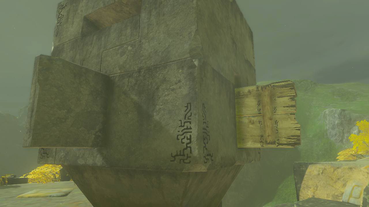 Schiebt das Holzbrett via Ultra-Hand hinein, bis es nicht mehr weiter geht. Ist das Brett nicht weit genug im Stein, fällt es nach Beenden der Ultra-Hand einfach raus, achtet also darauf, dass ihr das Holzbrett nicht zu weit rausgucken lasst. Jetzt hat der Brocken die richtige Form für das erwähnte Symbol an der Wand, doch die notwendige Sonne fehlt noch.