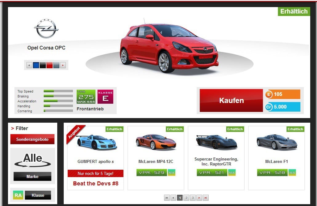 Bevor ihr aber erstmals die Startlinie überquert, dürft ihr zuvor mit der Webseite des Spiels Bekanntschaft machen. Diese ist nicht nur für die Anmeldung notwendig, sondern stellt neben den Rennstrecken auch gleichzeitig den Hauptanlaufpunkt des Spiels dar. Auto Club Revolution ist nämlich nicht nur ein Onlinespiel, sondern zeitgleich auch eine Art Social-Network für Rennsportler. Seid ihr also nicht gerade auf der Piste, könnt ihr die Zeit auch dazu nutzen, an Diskussionen teilzunehmen oder Gleichgesinnte kennenzulernen. Die Gründung eines oder der Beitritt zu einem Rennstall (ähnlich einer Gilde oder einem Clan) ist zwar optional, für den späteren Spielspaß aber mit essenziell. Auf der Webseite findet ihr ebenso die täglichen Events, die ihr abschließen könnt, um zusätzliche Punkte und Erfahrung zu kassieren. Damit kommen wir auch schon zur Fahrerentwicklung. Ähnlich wie viele andere Onlinegames baut ACR hier auf ein Stufensystem, welches zwar keinen großen Einfluss auf die Inhalte des Spiels hat, aber für das Matchmaking und die Kaufmöglichkeiten verschiedener Autos eine Rolle spielt.
