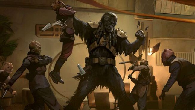 Ein paar wichtige Details: Bei den Trandoshanern ist die rituelle Jagd eine Tradition. Sie müssen kurz gesagt einen mächtigen Gegner überwinden, was als großer Triumph gilt und zur Anerkennung führt. Das ist in ihrer Kultur tief verankert. Und daraus resultierte unweigerlich die Jagd auf Wookiee.