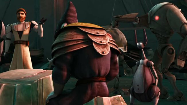 Davon ab schwingt ein weiterer Droide in der Küche von Jabbas Palast im „Kampf gegen Boba Fett“ seine Arme – und zwar genauso wie General Grievous seine Lichtschwerter schwingt. Nur Zufall? Ich denke nicht.