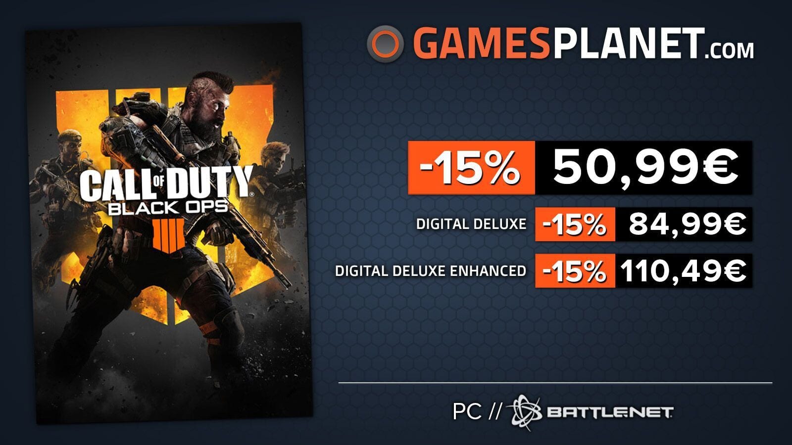- Call of Duty: Black Ops 4: Digital Deluxe Enhanced Edition (15% Rabatt, jetzt nur 110,49€)