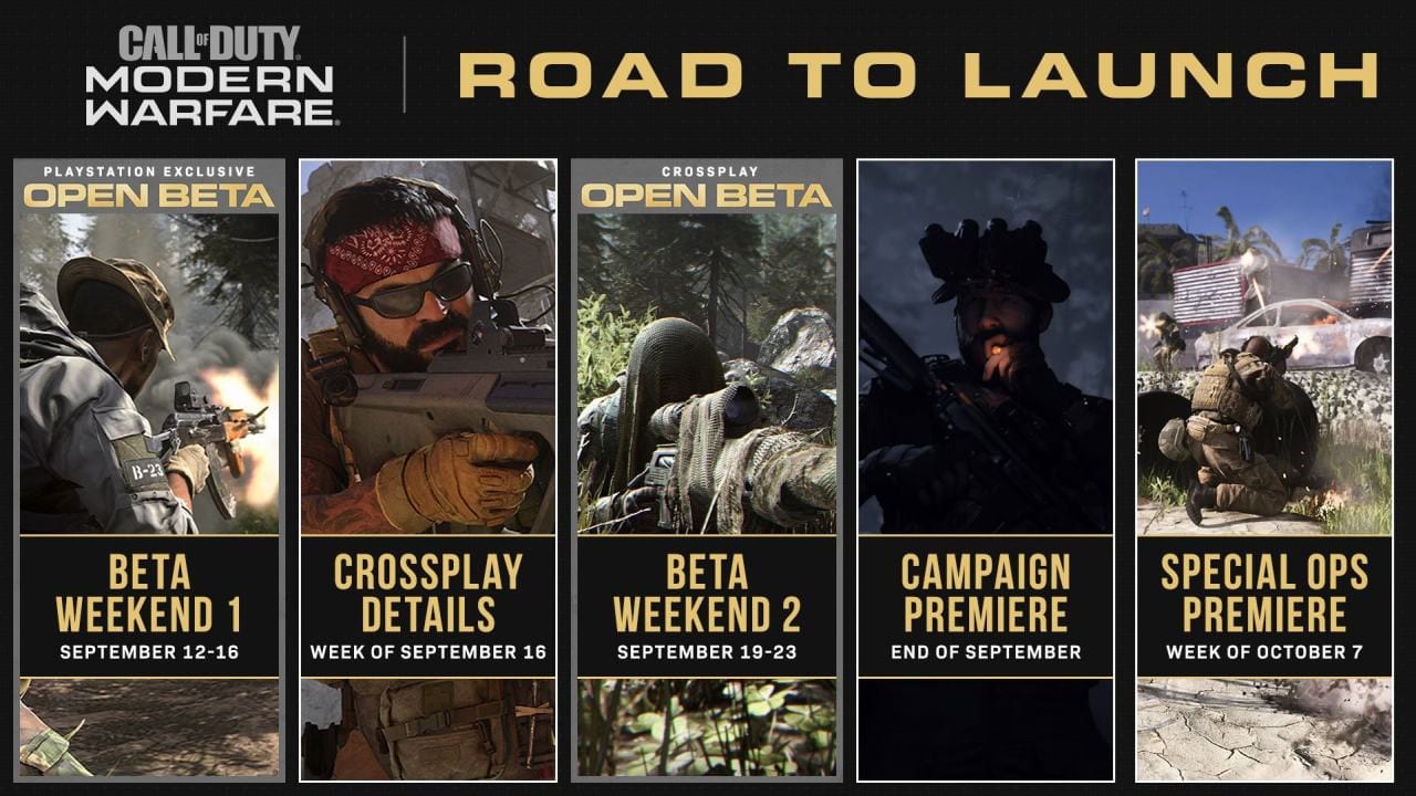 Auf Twitter haben die Verantwortlichen jetzt die Roadmap mit Inhalten veröffentlicht, auf die ihr euch bis zum Release von „Call of Duty: Modern Warfare“ Ende Oktober freuen dürft.