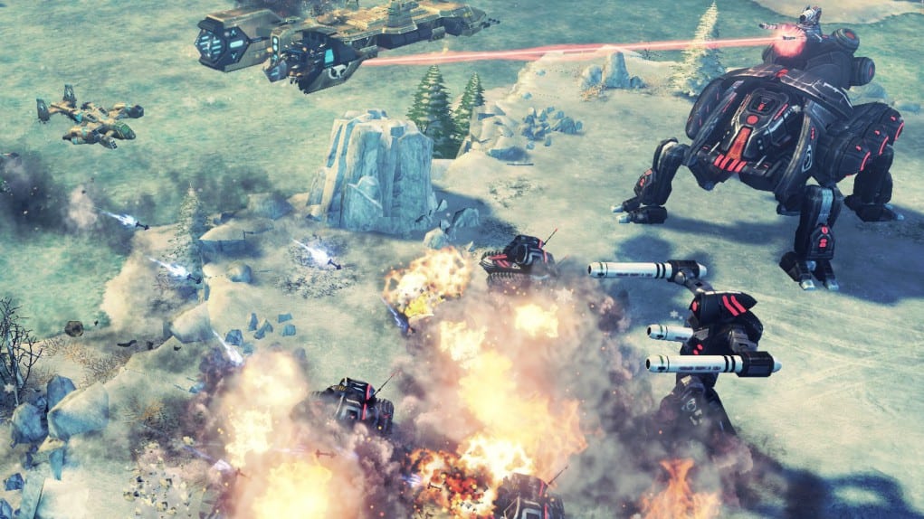 Seit Jahren wird von der Community gefordert, dass man seitens Electronic Arts doch mal bitte ein wenig Neues in die Spielmechanik und das Prinzip einbauen soll. Für den vierten Teil hat Electronic Arts auf die Community gehört und die Spielmechanik und damit den Spielverlauf gehörig aufpoliert. So hat man den klassischen Basisbau gleich komplett weggelassen. Nun besitzen wir zu Beginn eines jeden Matches einen sogenannten "Crawler", welcher sich an jeder x-beliebigen Stelle auf der Map zu einer funktionstüchtigen Basis umbauen kann. Somit fallen Investitionen für Kasernen, Waffenfabriken und Flugstationen komplett weg. Begrenzt ist natürlich der Einheitenbau, welcher sich je nach Anzahl eurer Kommandopunkte vergrößert oder verkleinert. Wird in einem Skirmish-Match zerstört, können wir jederzeit einen neuen Anfordern. In den Kampagnen jedoch ist, aufgrund des taktischen Tiefgangs, nur eine begrenzte Anzahl an Anforderungen möglich.