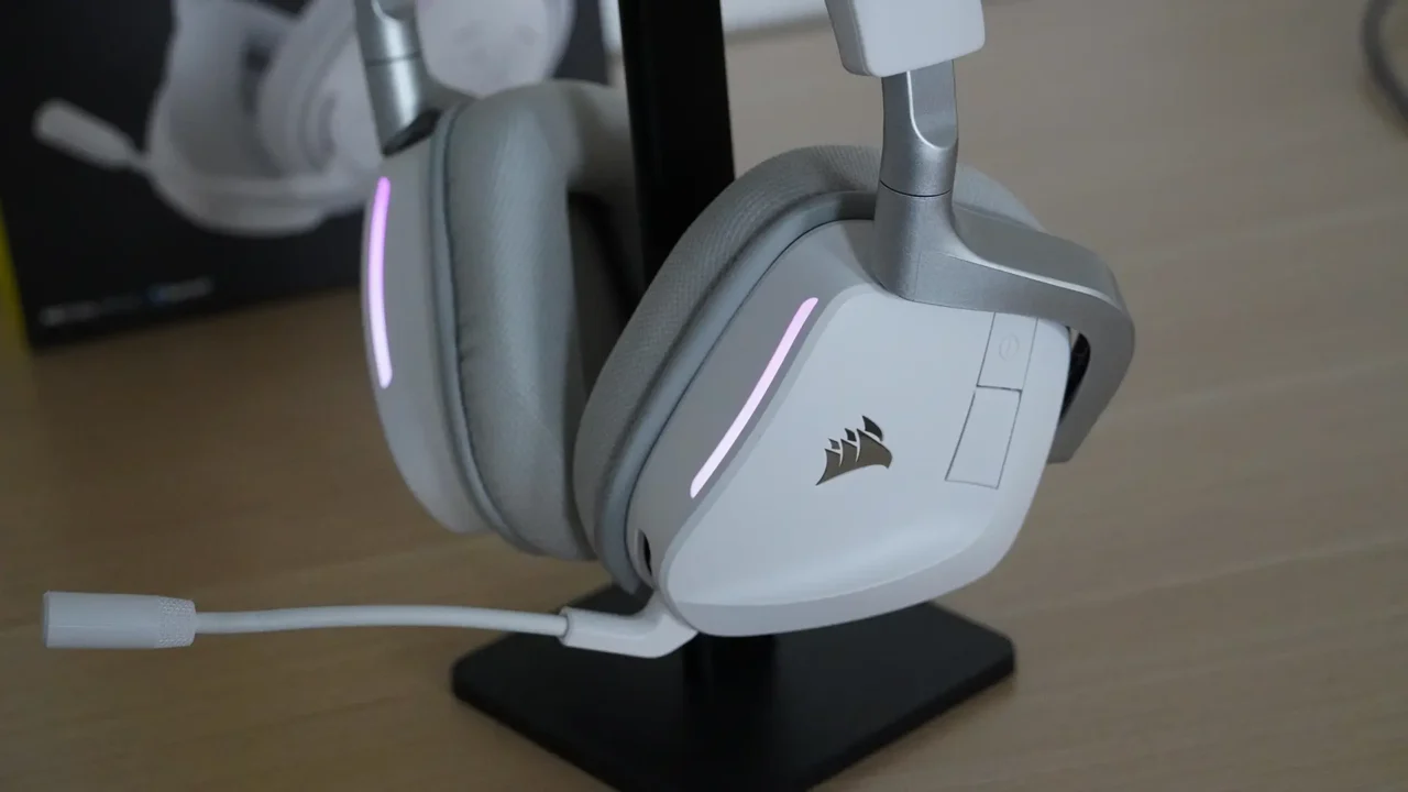 Dennoch gibt es einen kleinen Hingucker: An der Vorderseite beider Ohrmuscheln sitzt jeweils ein beleuchteter RGB-Streifen, der über die Corsair iCUE-Software in Farbe und Effekt angepasst werden kann. Für den Träger selbst kaum sichtbar – aber für Streamer oder Content Creator auf Kamera ein nettes Extra.