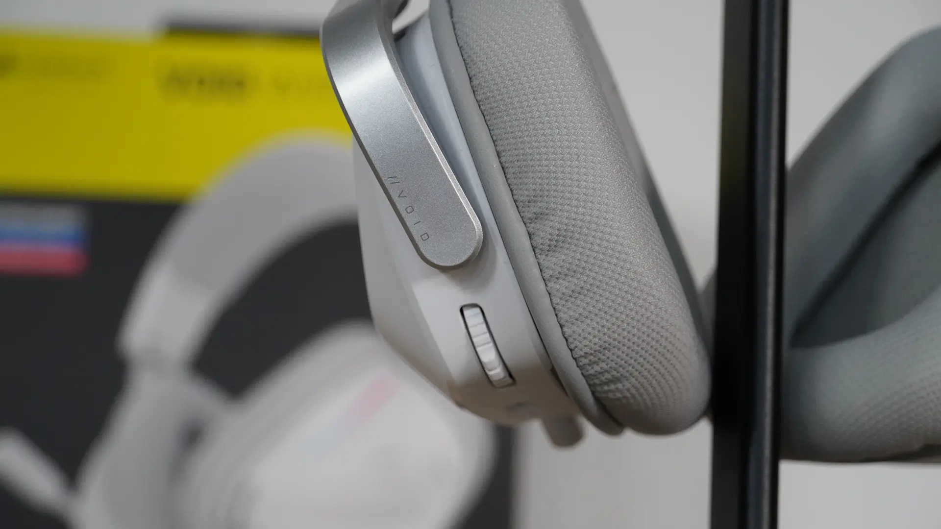 Mit 303 Gramm ist das VOID Wireless V2 auffallend leicht – fast schon zu leicht, was bei mir zunächst den Eindruck eines etwas „billigen“ Materials erweckte. Gerade die Drehgelenke der Ohrmuscheln wirken für mein Empfinden nicht besonders stabil, hier hätte ich auf lange Sicht etwas Sorge, dass sie brechen könnten.