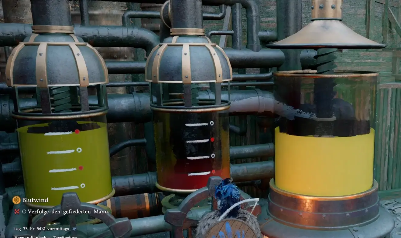 Warte, bis die Anlage Elixierflaschen ausgibt und das Ziel Stelle das perfekte Elixier her als erledigt markiert wird. Falls das nicht zählt, liegt es fast immer an der Mischung: Geh zurück zur Mischanlage und stelle die oben genannten Füllstände erneut ein, bis die Aufgabe sauber abschließt.