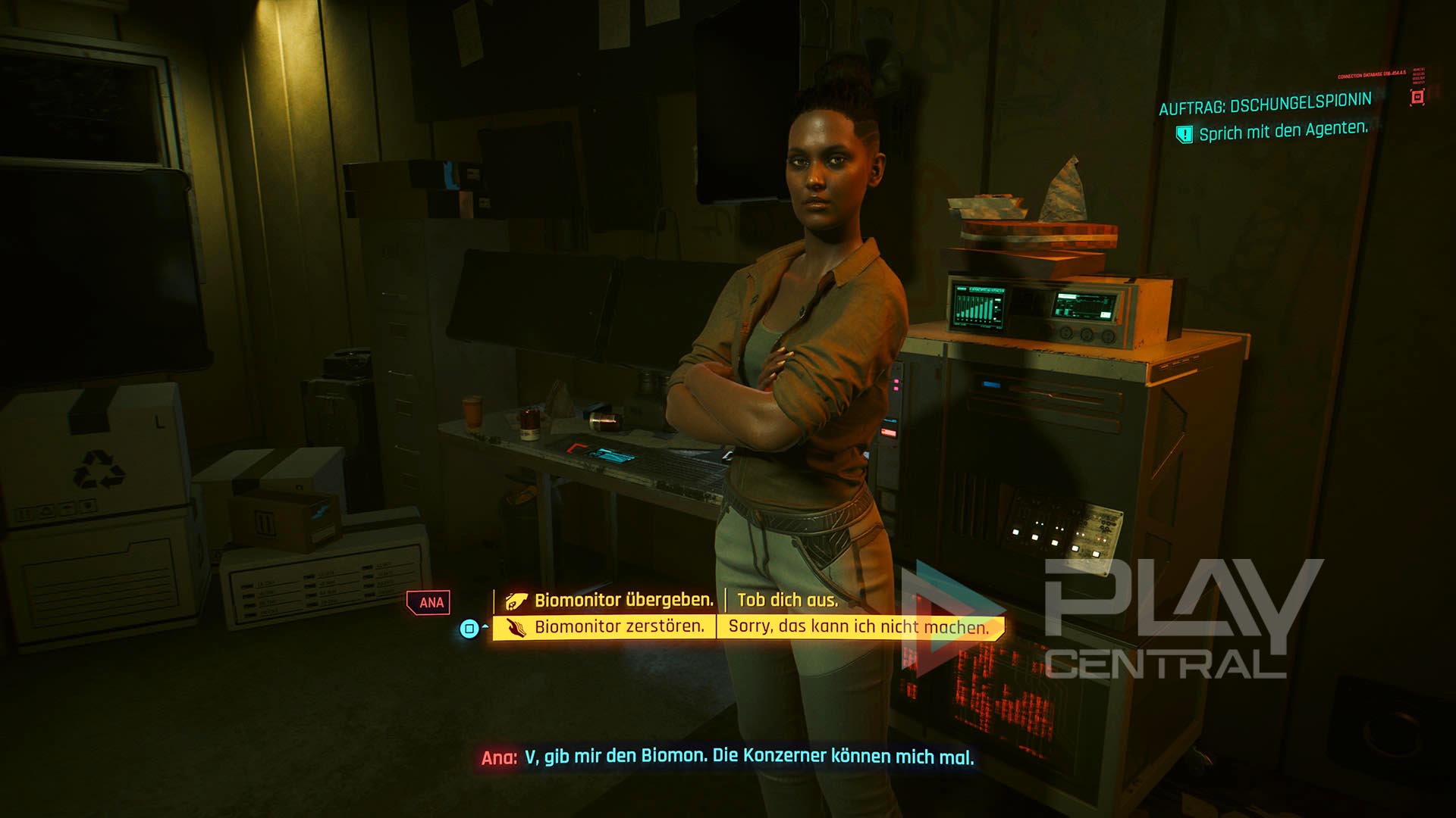 Wenn wir uns für Steven entscheiden, können wir den Biomonitor auch vor Ort zerstören. Das gefällt Ana zwar nicht, aber am Ende richtet sie in ihrer Wut nur noch mehr Schäden an. Deshalb würde ich mich eher für diese Wahl entscheiden.