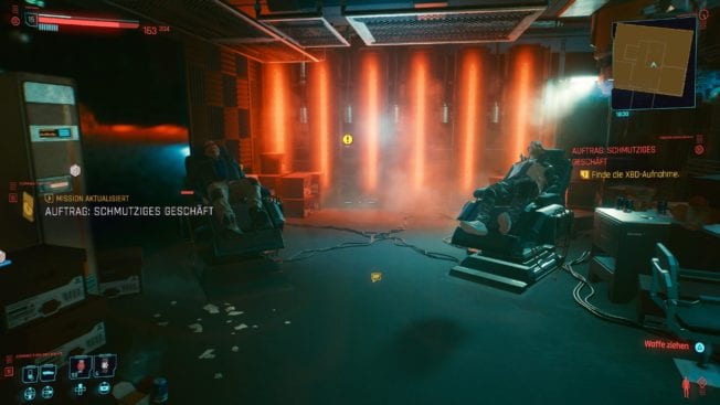 Hier begegnet ihr den Charakteren Frederik und Gottfrid, die an exquisiten Braindances arbeiten und euch auf ihr kleines Familienunternehmen aufmerksam machen. Ihr könnt entscheiden, ob ihr sie einfach umnietet, und die gefragte Aufnahme bergt, oder ihren Worten lauscht. Ihr müsst sie also nicht zwangsweise ausschalten.