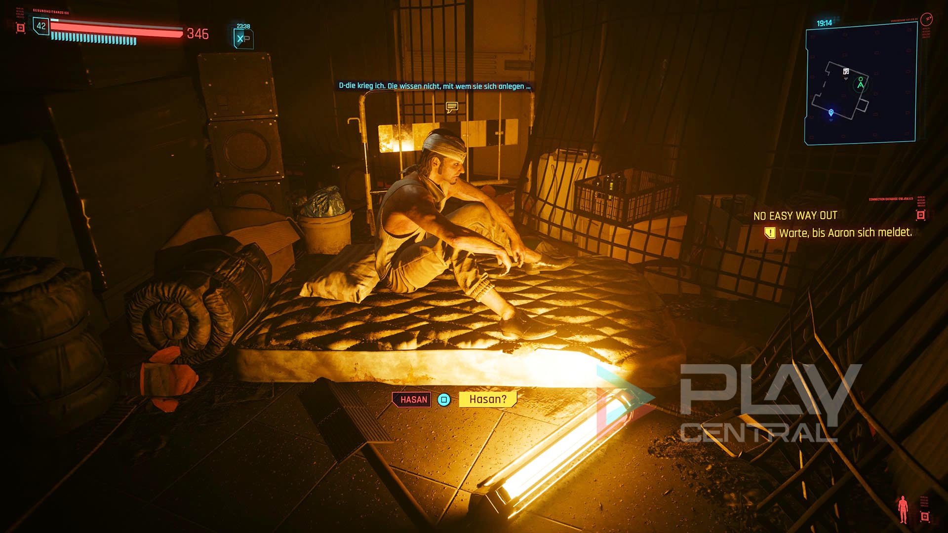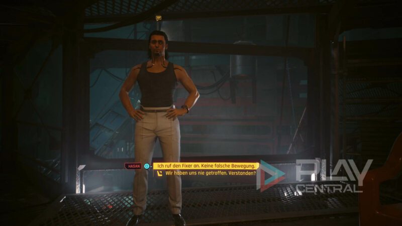 Zunächst hören wir uns die Geschichte von Hasan an. Er selbst war einmal ein Ingenieur bei Zetatech und hat sich die gestohlene Tech selbst eingepflanzt, um zu überleben.