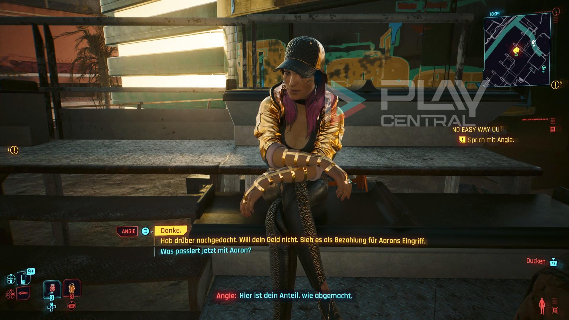 Und wie so oft im Cyberpunk-Universum werden wir hier vor die Wahl gestellt: Sollen wir dem Boxer Aaron helfen? Oder wäre Animal Angie nicht doch die bessere Wahl? Immerhin hat sie ein verlockendes Angebot für uns. Schwierig, schwierig.