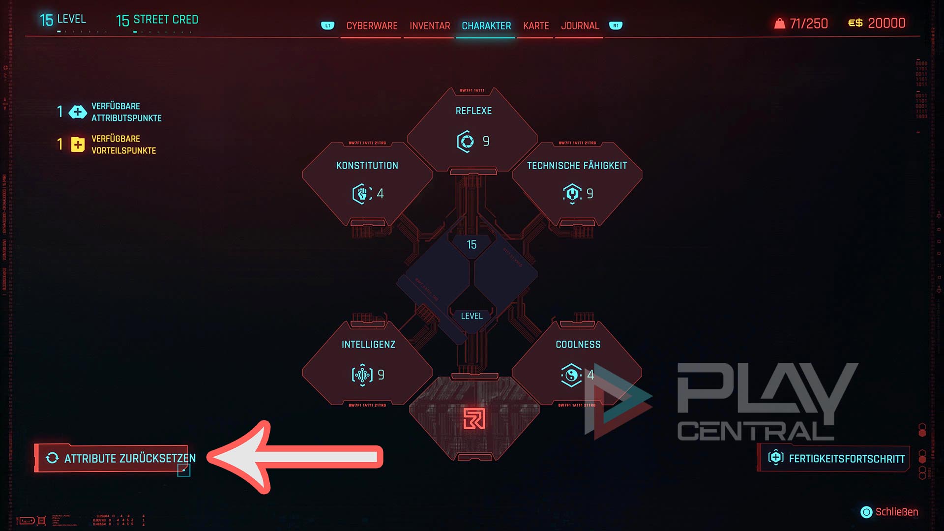 Attribute zurücksetzen: Ihr erhaltet bei dieser Wahl jedoch eine kostenlose Möglichkeit, die Attributs- und Vorteilspunkte vollständig zurückzusetzen. Schaut ins Menü und passt euren Charakter nach Belieben an.