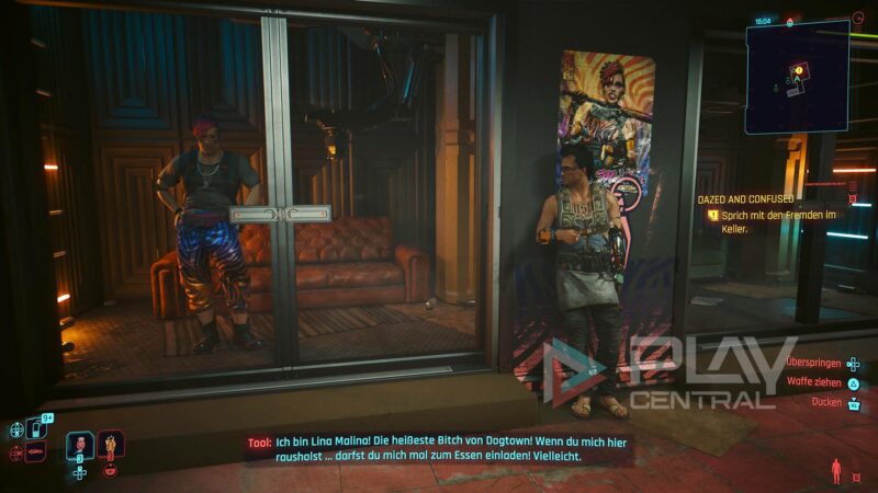 Wenn wir nun antworten, dass das „Kunst“ sei, verlässt Lina zwar den Dreh, doch Tool kommt wieder zu sich und wir haben die Mission erfolgreich abgeschlossen. Wir erhalten eine Belohnung von 8000 Eddies und Johnny ist happy.