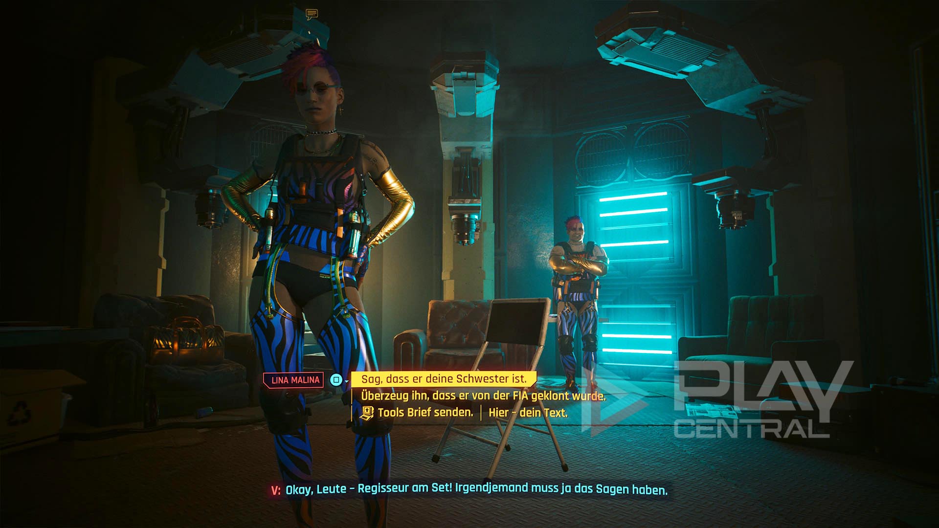 Schreibt Shank eine Nachricht, dass sie auf dem Weg ist. Er möchte, dass V beim Dreh dabei ist und deshalb müssen wir nun einen Tag auf seinen Anruf warten.