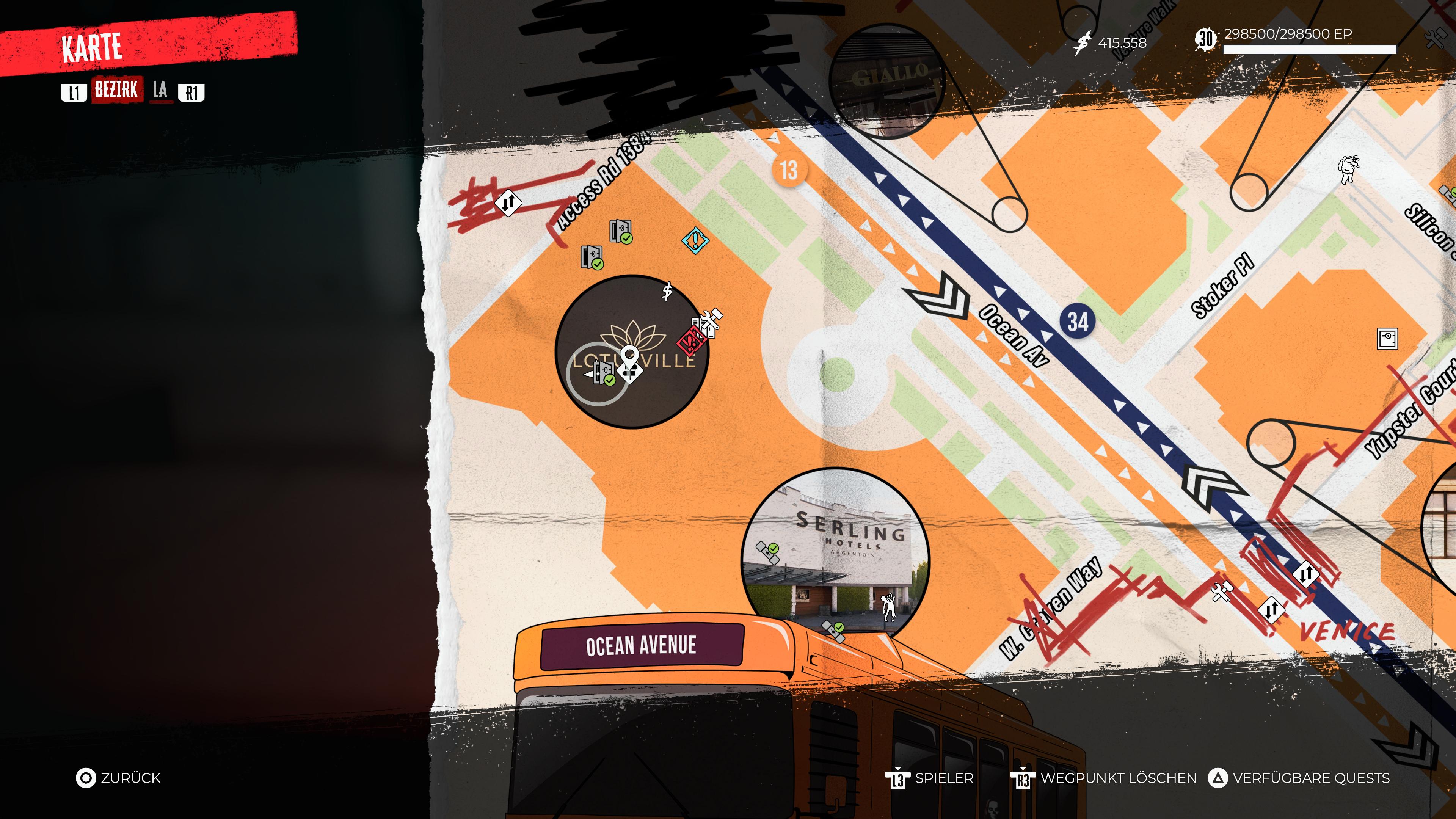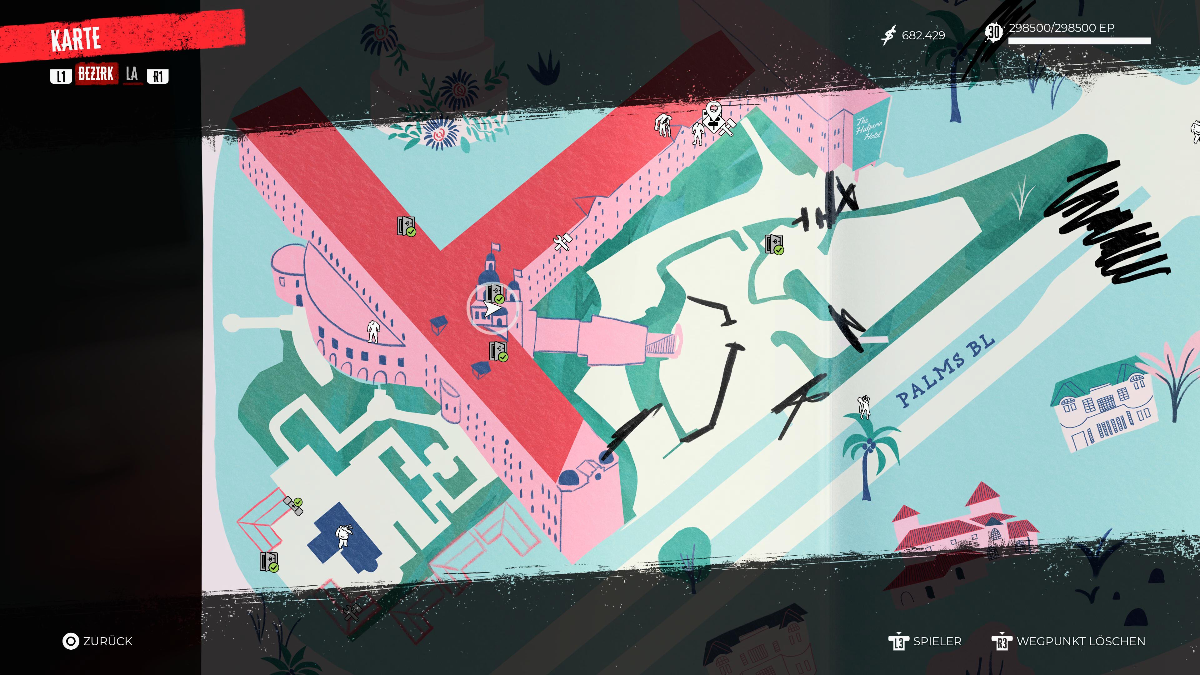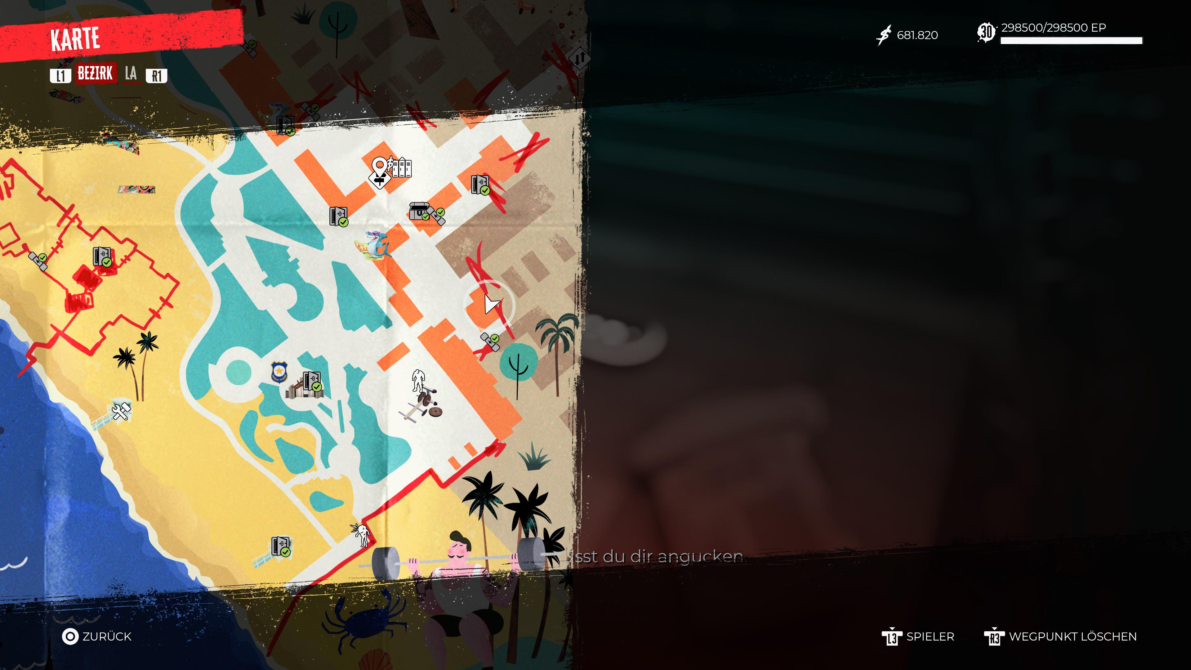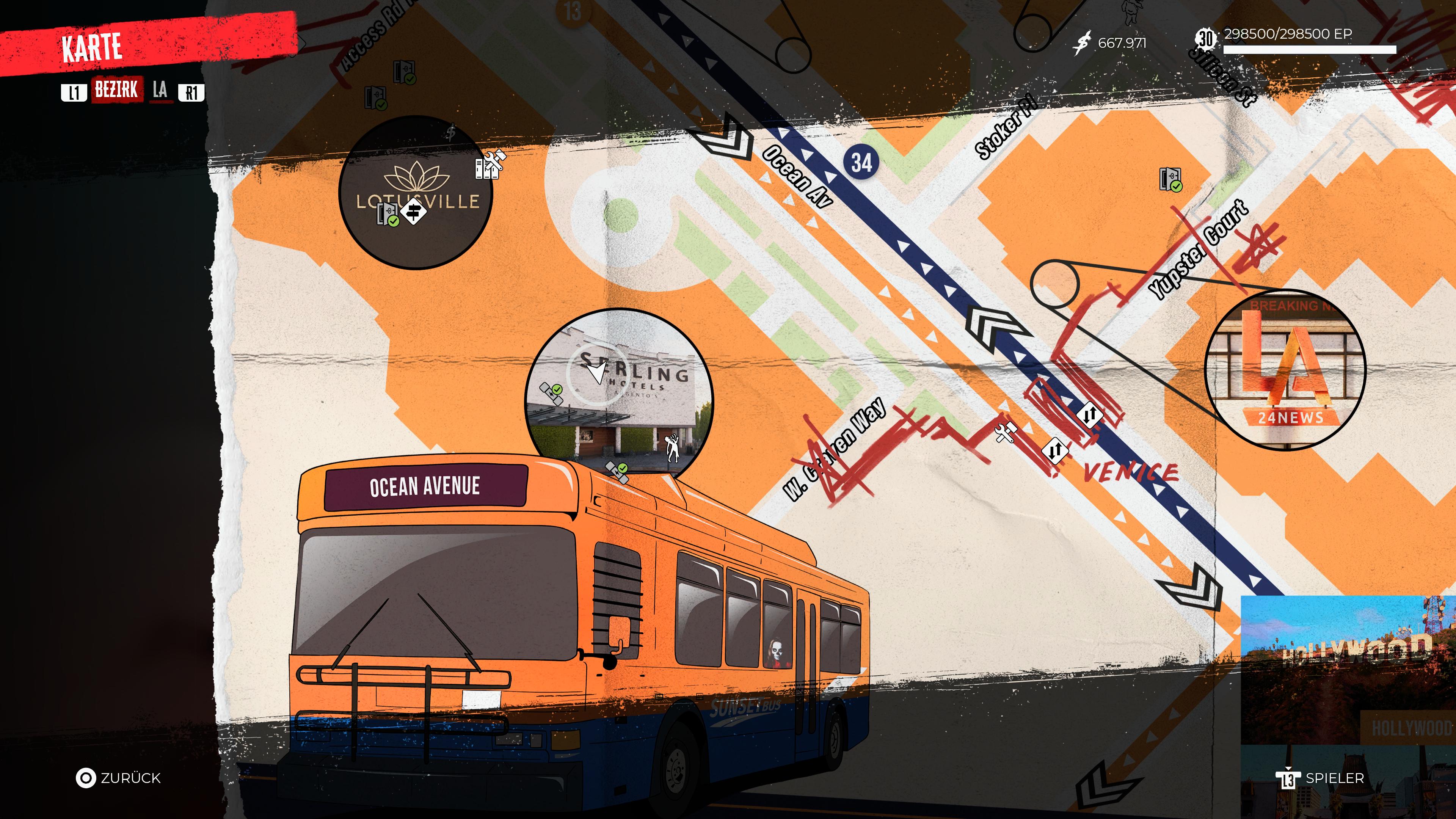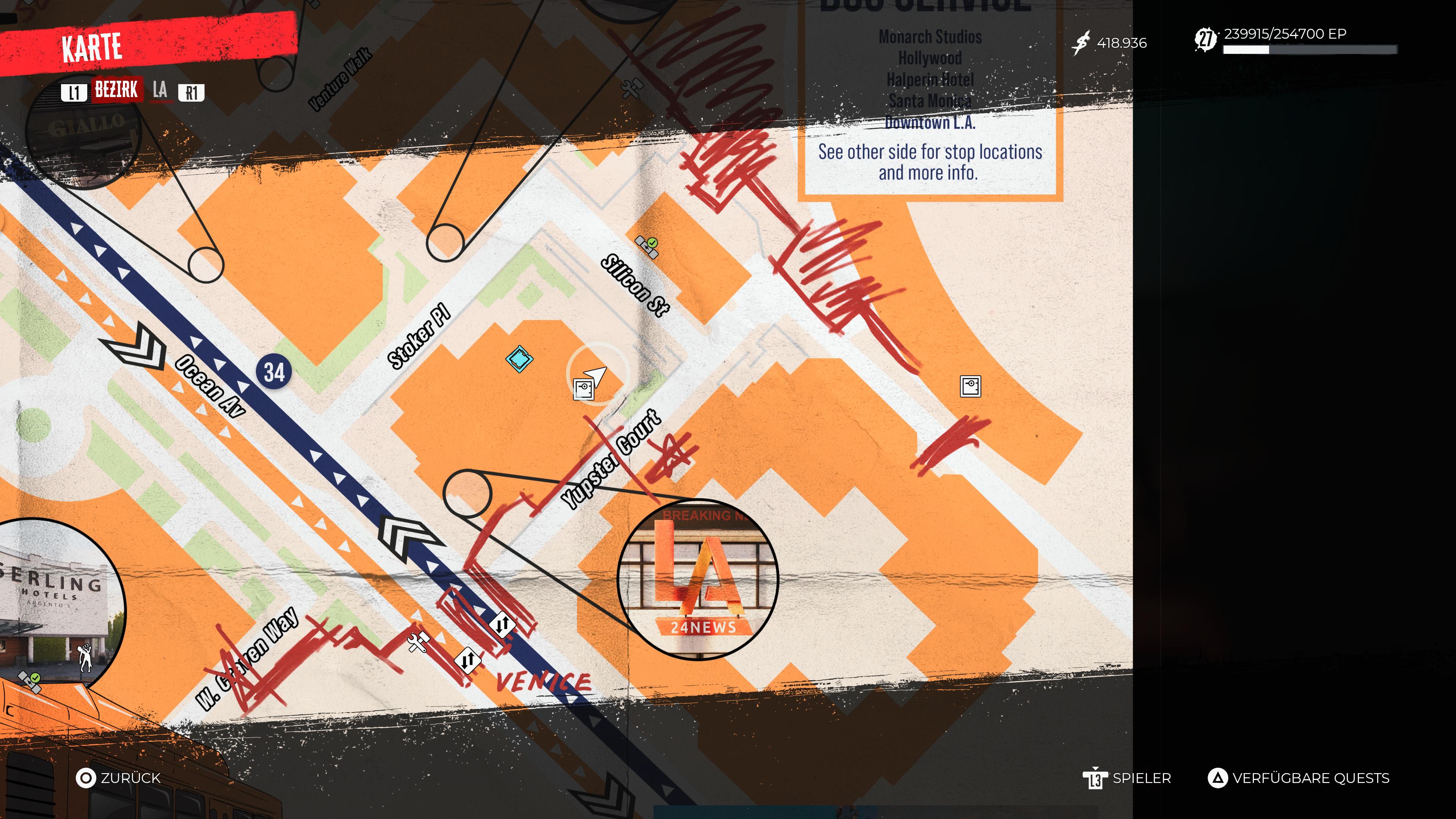 Hollywood Boulevard: Zu finden in dem Raum, in welchem der finale Boss-Kampf in „Dead Island 2“ stattfindet. Zerstört gegebenenfalls die Wasserfässer auf den Paletten, um diesen Eintrag besser sichtbar zu machen.