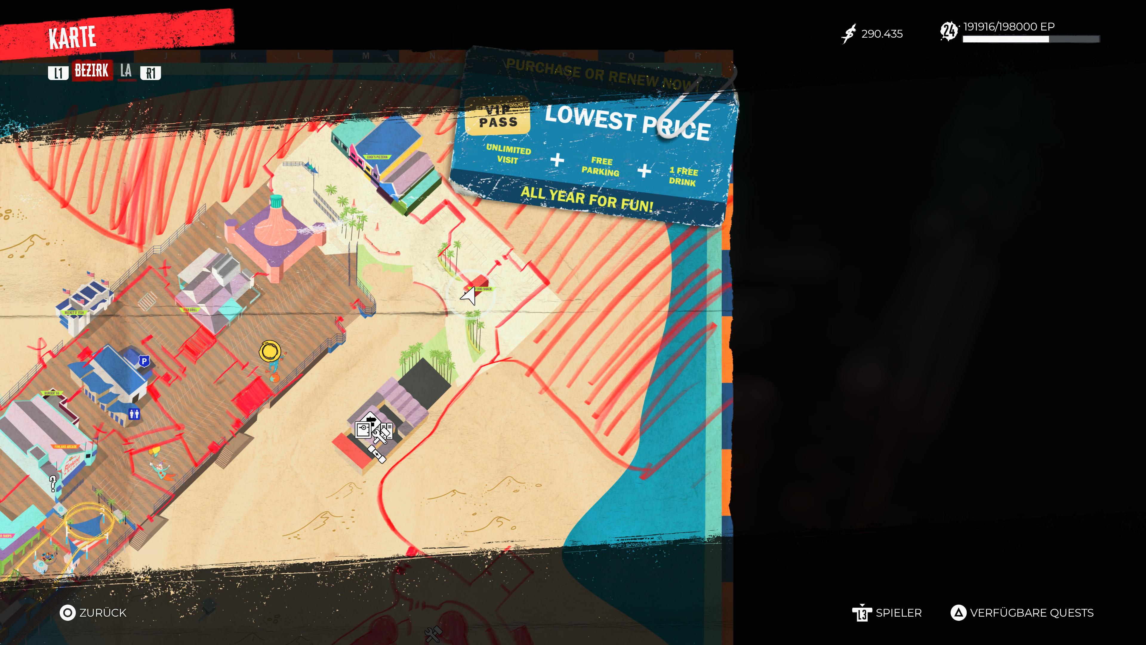 Der Pier: Frühstens während der Hauptmission Dickbrettbohrer könnt ihr den Hot-Dog-Shack im Norden des Bezirks erreichen, einen roten Container, den ihr durch den Hintereingang betreten könnt. Ihr findet das entsprechende Geschäft nördlich von dem Safe House: Einsatzstelle für Rettungsschwimmer.