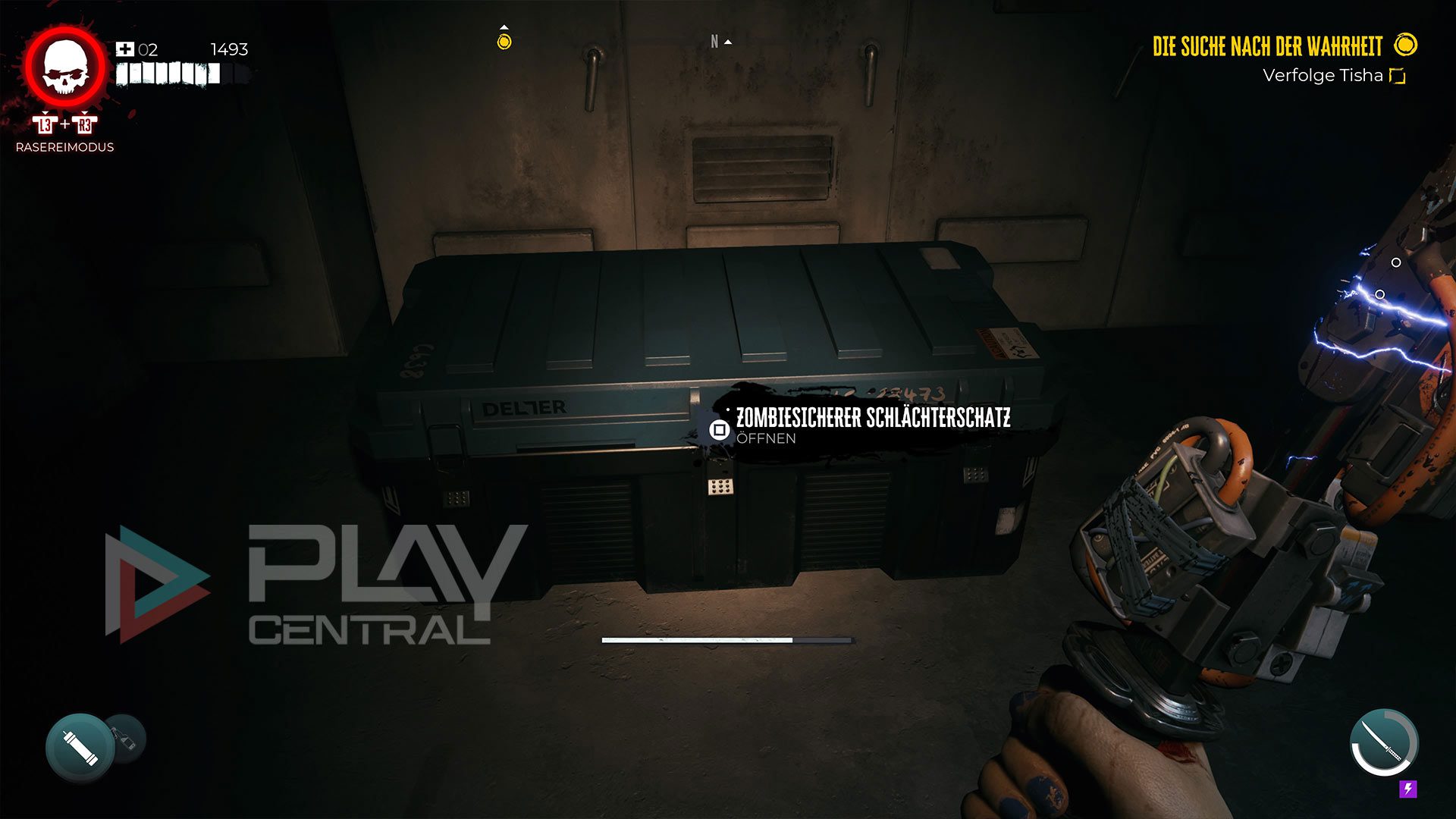 Die Highlight sind aber die richtig großen Truhen, die als Zombiesicherer Schlächterschatz betitelt werden. Darin befinden sich besonders starke Waffen, die immer über die Seltenheitsstufe Exquisit verfügen (höchste Seltenheitsstufe) und somit bereits ohne Upgrades über sehr gute Werte verfügen. Solche Waffen könnt ihr an Werkbänken mit Mods und Vorteilen optimieren, um durchschlagende Effekte und Boni hinzuzufügen.