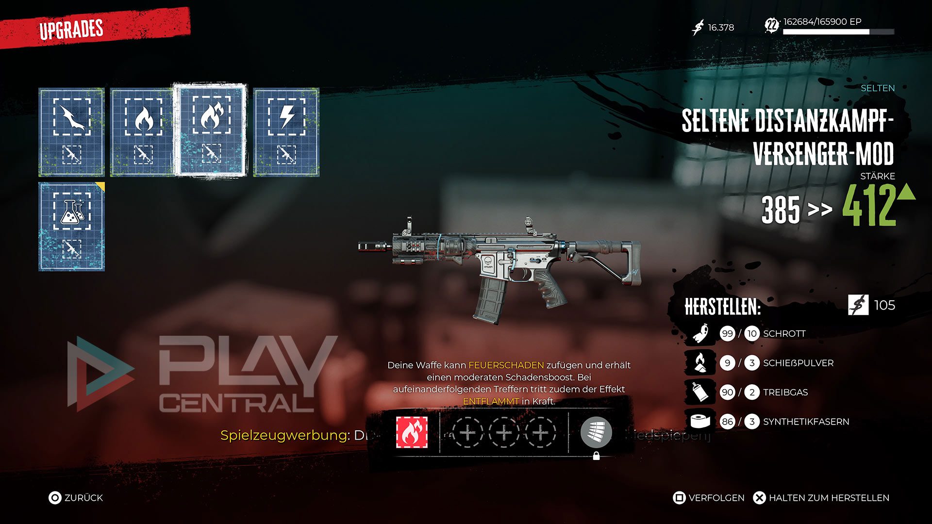 - Basis-Schadenstyp bezeichnet, was die Waffe ohne Mods draufhat. Distanzwaffen bewirken Projektilschaden, der Zombies verstümmeln kann.