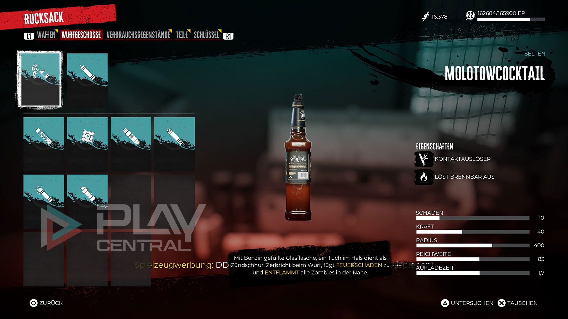 Neben den Primärwaffen gibt es in „Dead Island 2“ außerdem eine Auswahl an verschiedenen Wurfgeschossen, mit denen ihr Zombies ausschalten, anlocken oder blenden könnt. Solche Waffen könnt ihr bei Händlern kaufen und später im Spiel auch selbst herstellen. Statuseffekte sind natürlich auch bei diesen Wurfgeschossen ein Thema. Steht ein Zombies zum Beispiel in einer Pfütze aus Benzin, kann ein einzelner Molotowcocktail wahre Wunder bewirken.