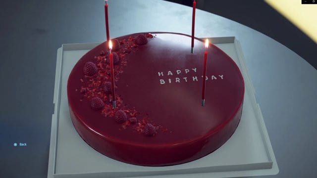 Die Überraschung ist ein Geburtstagskuchen. Das kleine Easteregg steht im privaten Raum für euch bereit und wartet nur darauf von euch verputzt zu werden. Na ja, wirklich interagieren könnt ihr mit dem Kuchen nicht, aber bewegt sich Sam im Raum umher oder führt sonstige Aktionen aus, dann könnt ihr feststellen, dass nach und nach einige Stücke des Kuchens verschwinden.