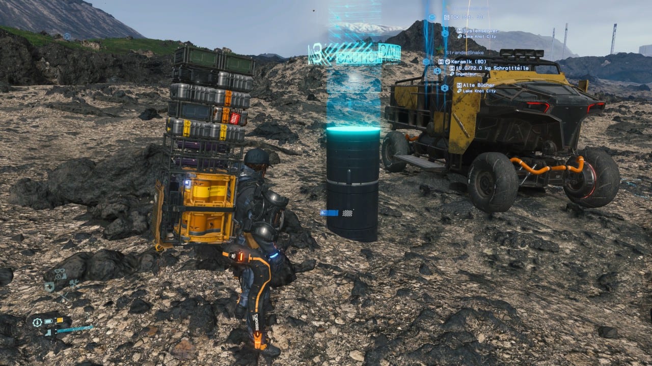 Dennoch besitzt „Death Stranding“ einige Eigenheiten, die es besonders machen und in anderen Spielen nicht existieren. So liegt ein großer Fokus darauf, dass symbolische Brücken gebaut werden sollen. Das zeigt sich in vielen Bereichen des Spiels. NPCs der Spielwelt sollen miteinander vernetzt werden, um eine neue Gemeinschaft zu etablieren. Tatsächliche Brücken werden gebaut, um das Vorankommen zu erleichtern. Und ihr seid auch mit anderen Spielern unentwegt vernetzt. Gerade das Letztgenannte ist der große Unterschied: Diese „Brücken“ zwischen den Spielern.
