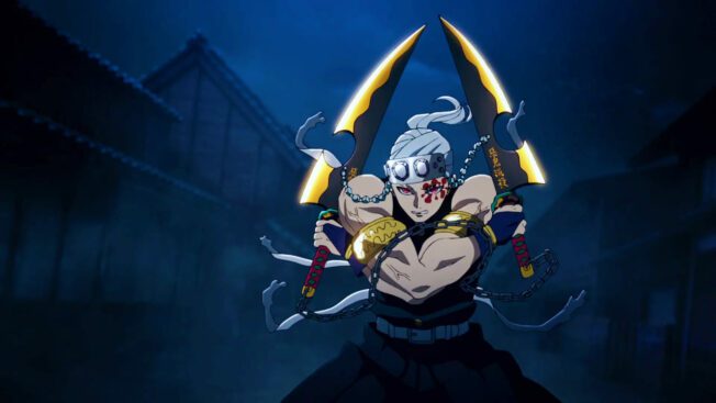 Darüber hinaus lernen wir in diesem Arc mit Tengen Uzui einen interessanten neuen Charakter kennen, der nicht nur mit seinem aufwendigen Design beeindruckt. Vielmehr ist es der Kontrast zwischen seinem zumeist recht besonnenes Wesen, das einen angenehmen Kontrast zu seinem Kollegen Rengoku darstellt, und seinen enorm schnellen und geschmeidigen Aktionen im Kampf. Doch beide Säulen vereinen ihre hervorragenden kriegerischen Fähigkeiten, denn Tengen gibt in der Action gegen die Dämonen alles.