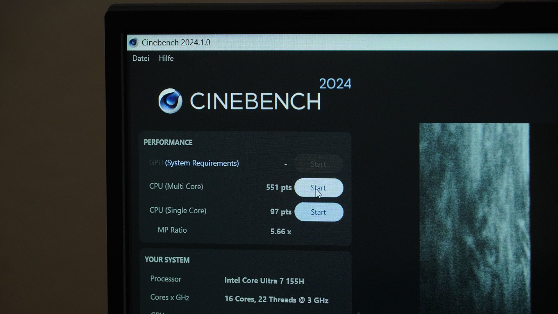 In Cinebench 2024 erreichten wir 97 Punkte im Single Core, während es im Multi Core 551 Punkte waren.