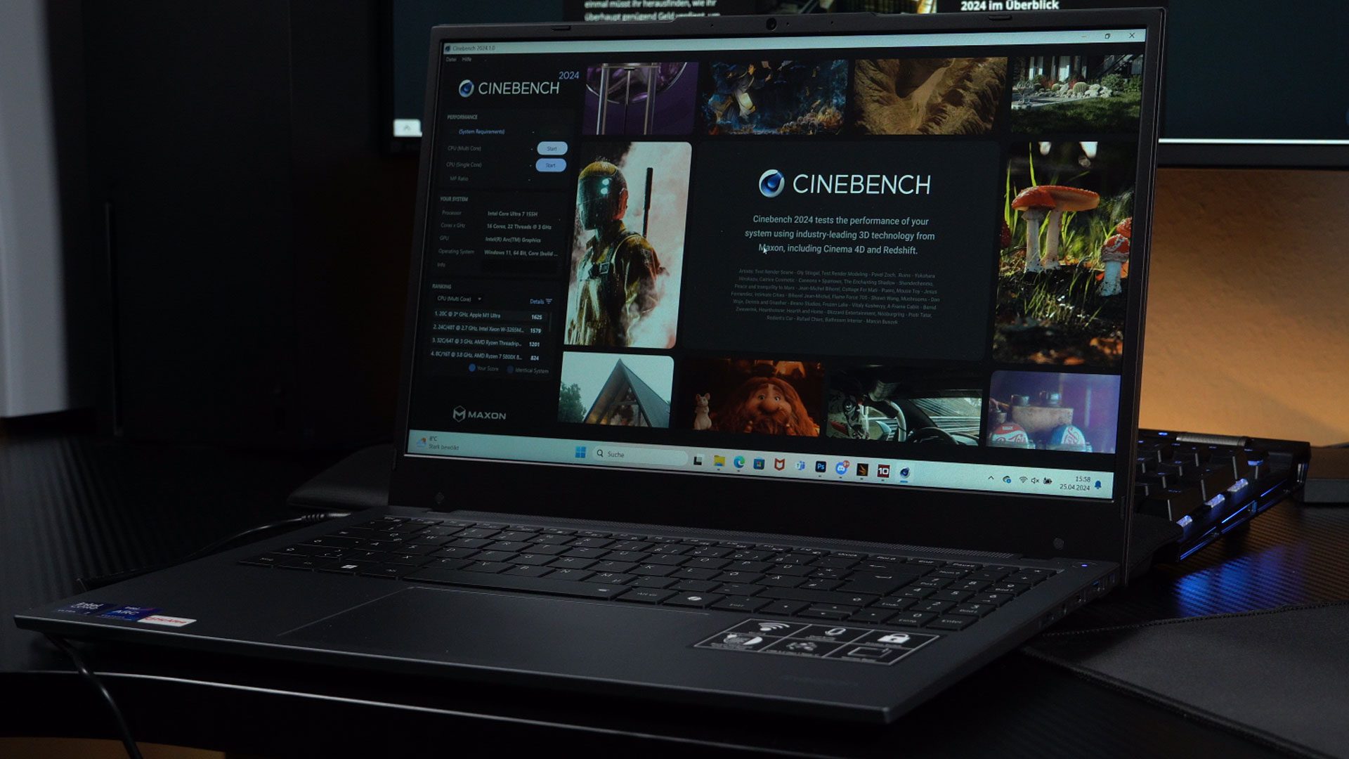 Kommen wir aber nun zur verbauten Hardware im Inneren des Medion E15443 und somit zu der Leistung des KI-Laptops. Im Mittelpunkt steht ein Intel Core Ultra 7 155H, der zur aktuellen Generation von Intel-CPUs gehört und dementsprechend eine gute Figur macht.