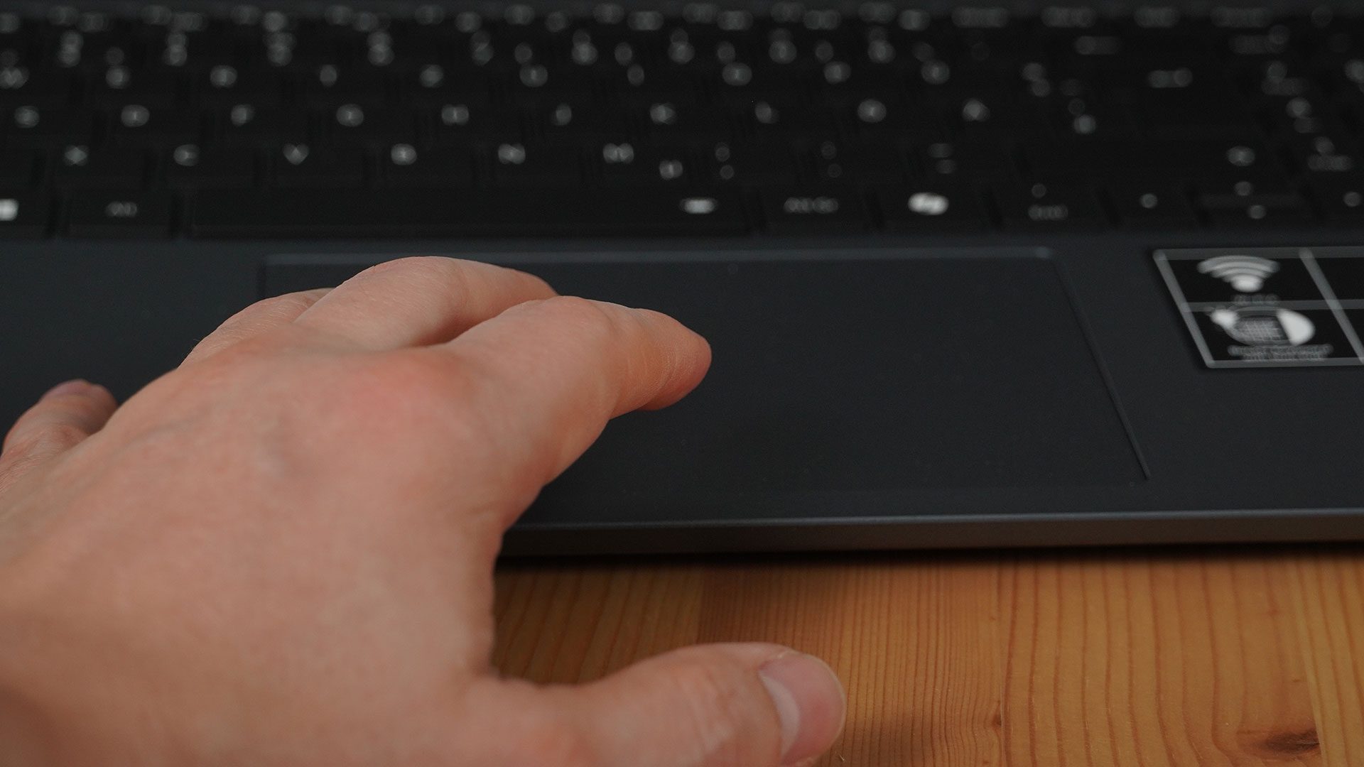 Das Trackpad bietet euch auf einer Fläche von 13,3 x 8,7 Zentimetern viel Platz, um den Mauszeiger und sämtliche Anwendungen auf dem Laptop zu steuern. Insgesamt funktioniert das Pad zwar recht zuverlässig, mir persönlich muss aber bei einer Eingabe zu viel Kraft aufgewendet werden, während mir die Bestätigung eines angenommenen Befehls deutlich zu laut ist.