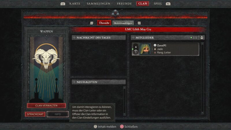 - Wählt im Hauptmenü den Punkt „Clan“ aus