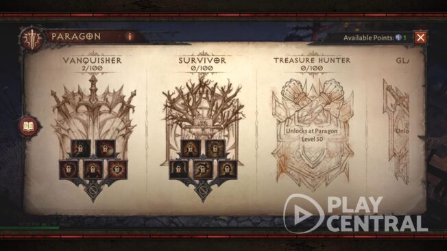 Wichtig: Nicht alle Paragon-Talentbäume werden sogleich mit Level 60 freigeschaltet. Einige öffnen sich erst ab einem bestimmten Paragon-Level. Bedenkt außerdem, dass die Paragon-Punkte an den Charakter gebunden sind. Ihr könnt sie also nicht zu einer anderen Klasse transferieren.