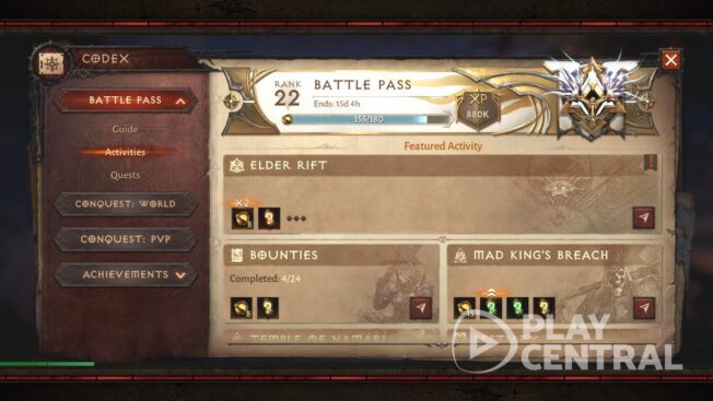 Am Anfang könnt ihr nach den täglichen Aktivitäten schauen. Gibt es Kopfgelder zu erledigen? Sind Raids gefragt? Oder was gibt das Bestarium her? Vielleicht sammelt ihr hier noch ein paar Einträge. Und so könnt ihr dann den Battle Pass aufleveln, was euch wiederum XP spendiert.