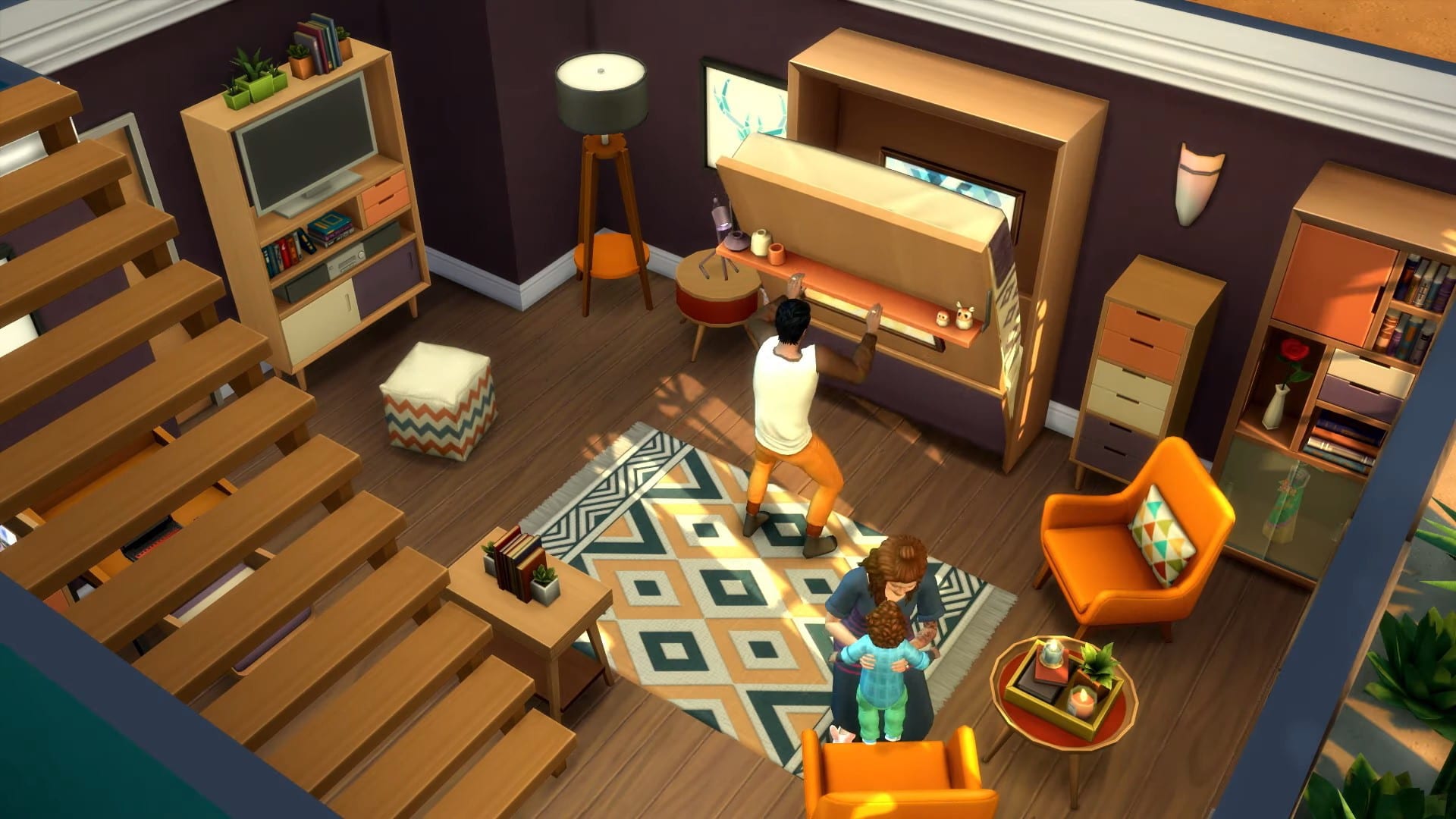 So könnt ihr mit eurem auf 100 Kacheln reduzierten Mini-Häuschen nicht nur eine gigantische Menge Simoleons sparen, sondern rückt eure Sims auf wenige Quadratmeter zusammen. Doch keine Angst: Platz finden werden eure Gäste trotz Platzeinsparung trotzdem, denn mit dem neuen Pack finden einige multifunktionale Objekte wie Schrankbetten oder einer Kombination aus Bücherregal, Sound-Anlage und Fernseher ins Spiel.